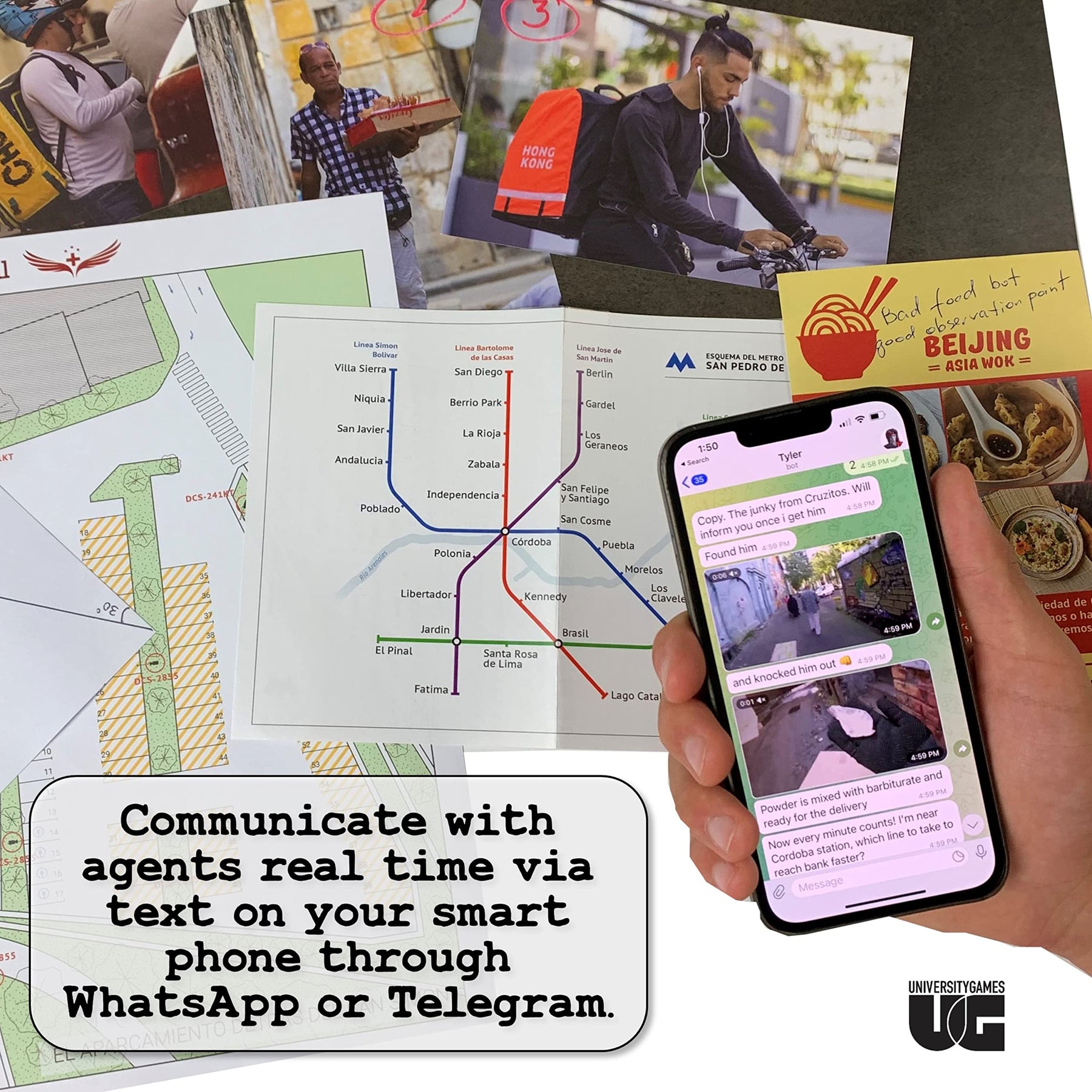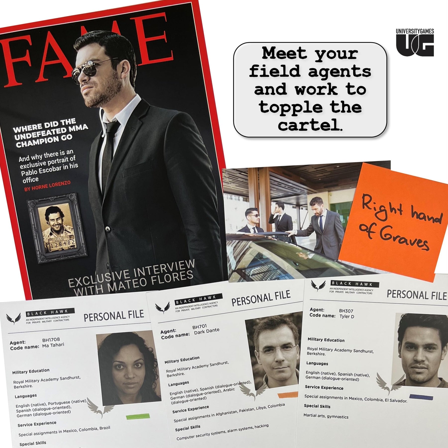 • Immersive physical evidence including emails, photos, restaurant menus, and magazines to plan and execute the mission