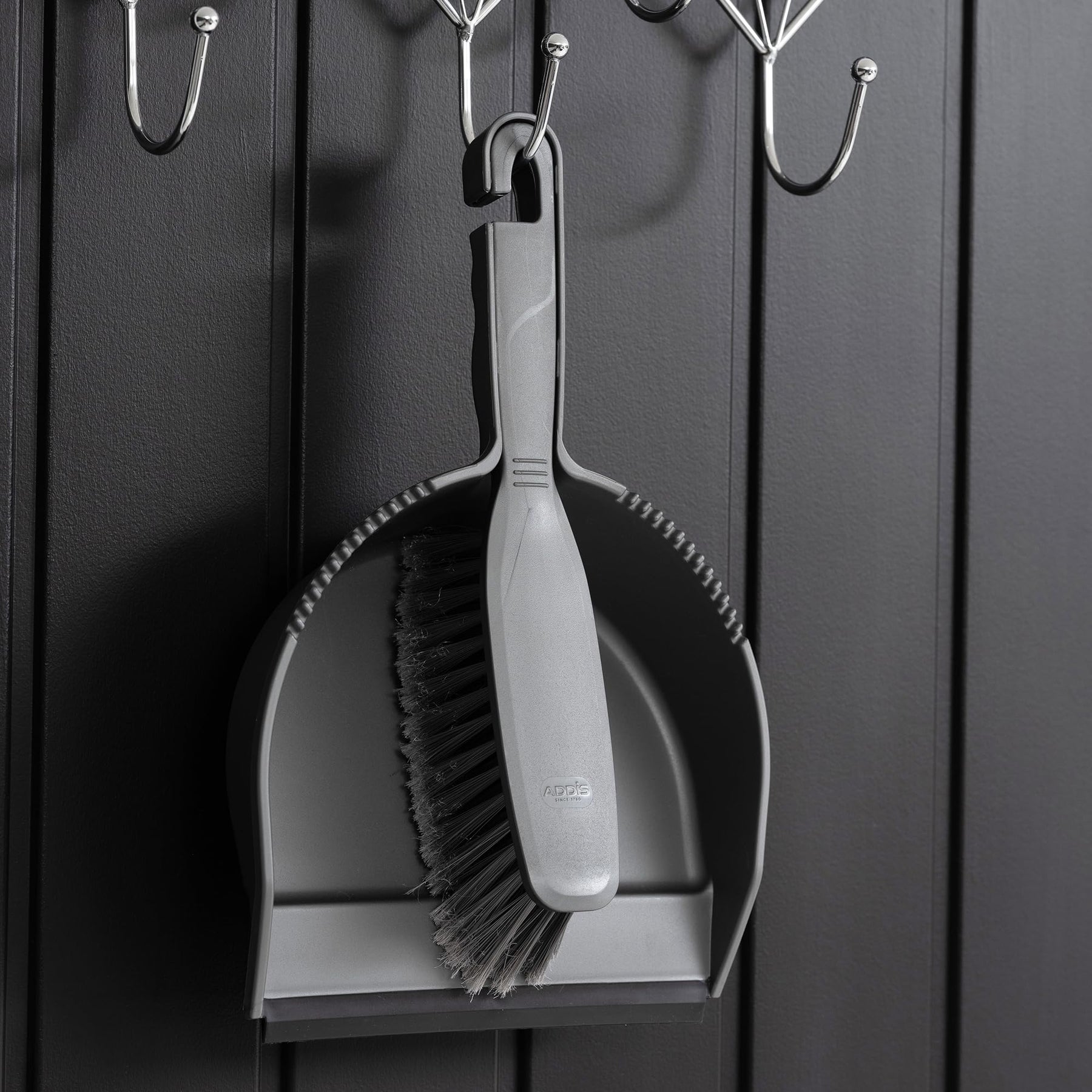 Addis Everyday Stiff Dustpan & Brush Set - Metallic Silver, Heavy-Duty Cleaning Tools for Home, One Size