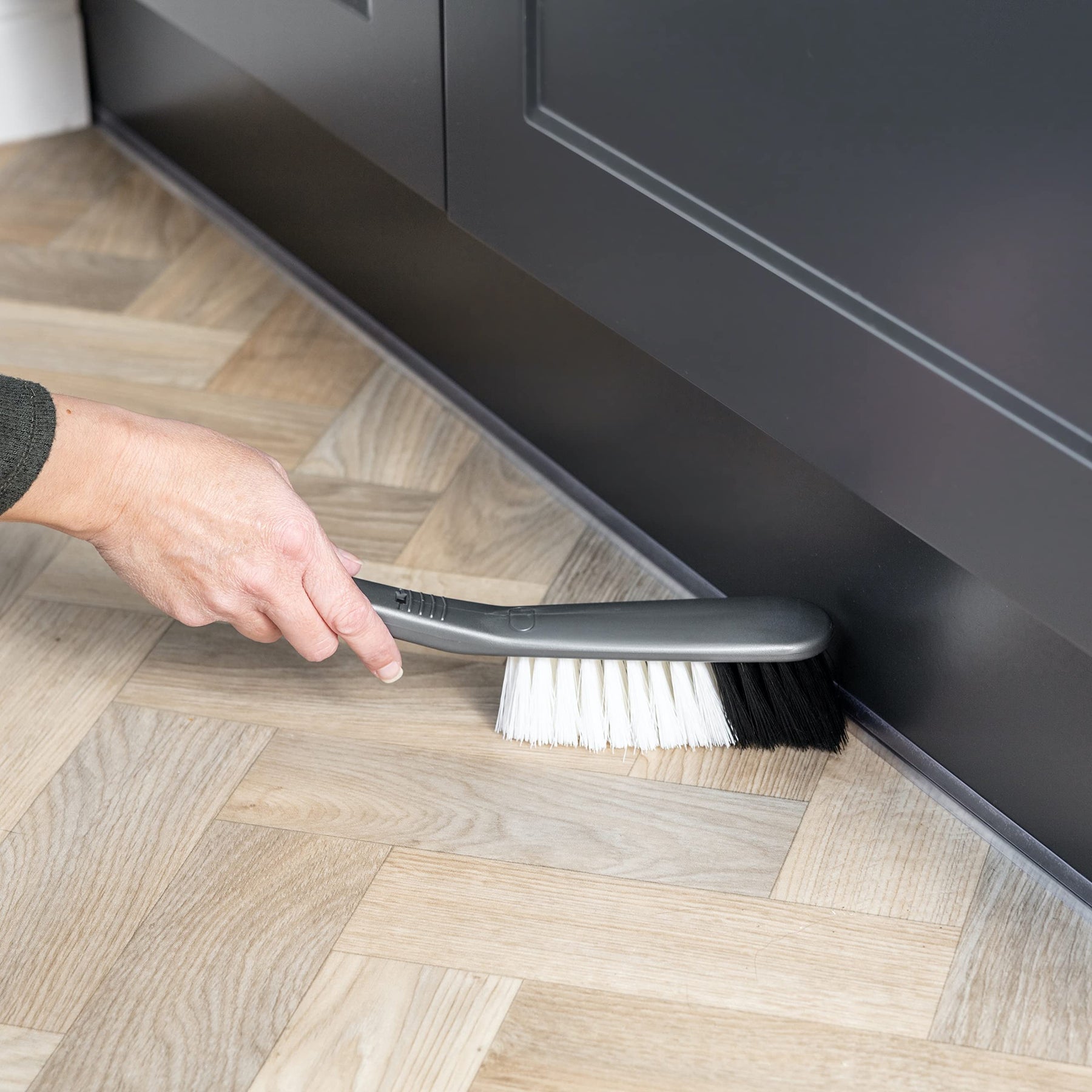 • Space-saving storage keeps brush and pan together and organized