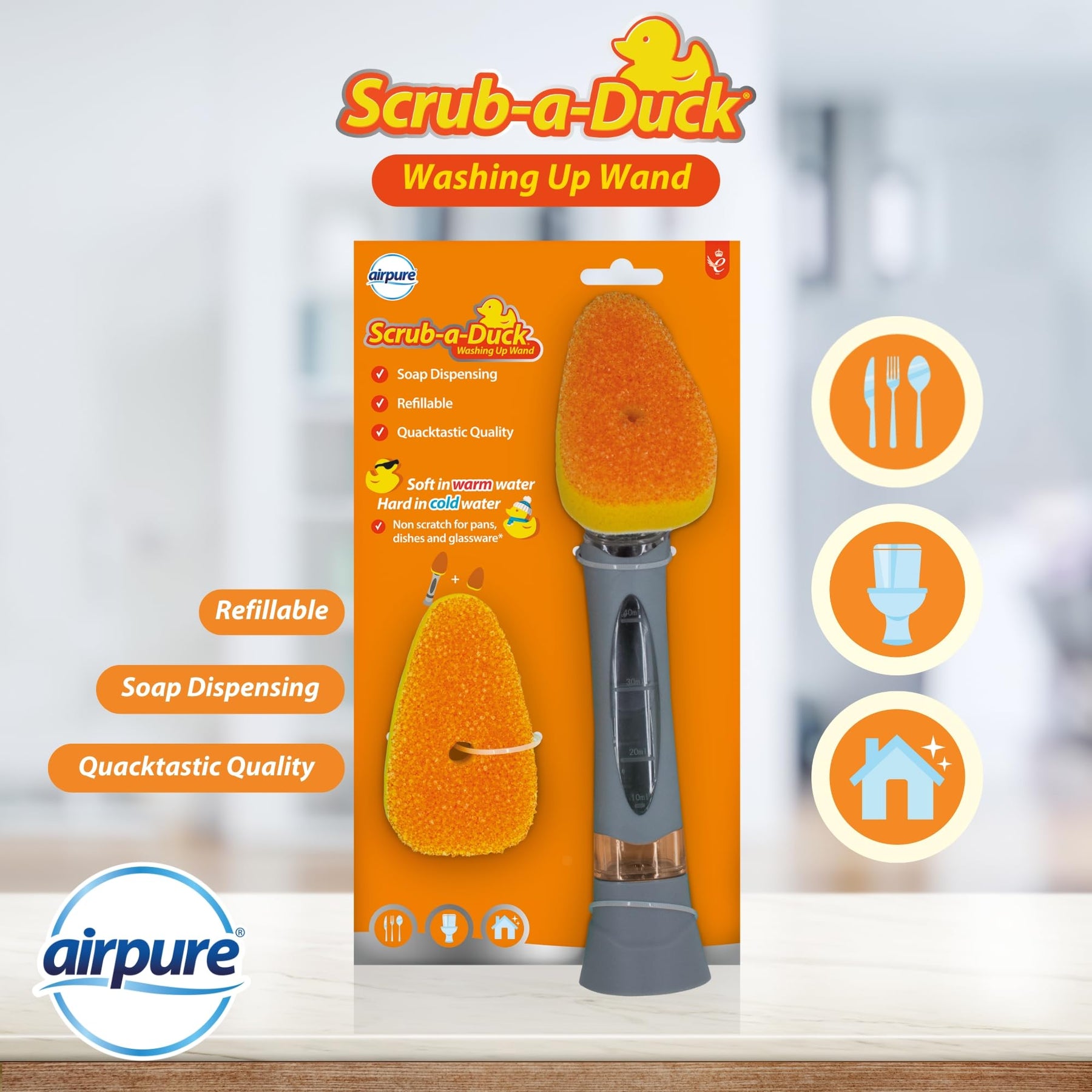 The airpure Scrub-a-Duck Washing Up Wand combines fun and functionality to transform your dishwashing experience. This innovative cleaning tool dispenses soap directly from its refillable handle, delivering the right amount of detergent exactly where you need it—no drips, no spills, just efficient cleaning.