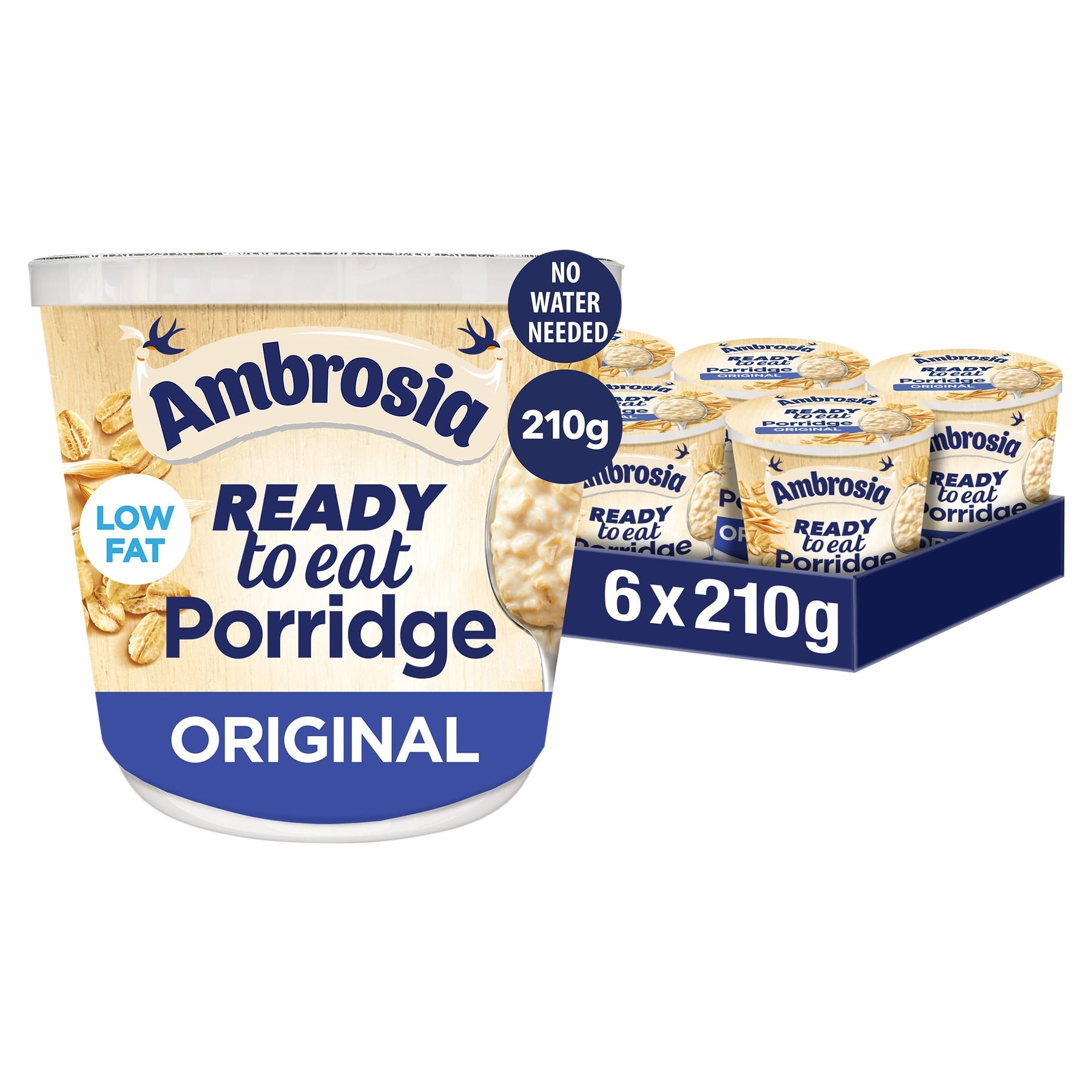 Ambrosia Original Ready to Eat Porridge Pots with British Wholegrain Oats, 210g (Pack of 6)