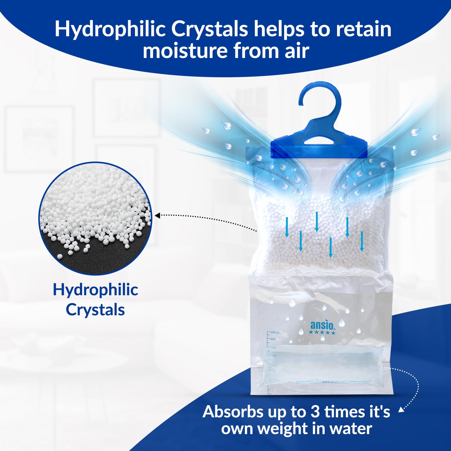 ANSIO Wardrobe Dehumidifier Hanging Bag - Moisture Absorber for Home, Closet, Caravan, Boat