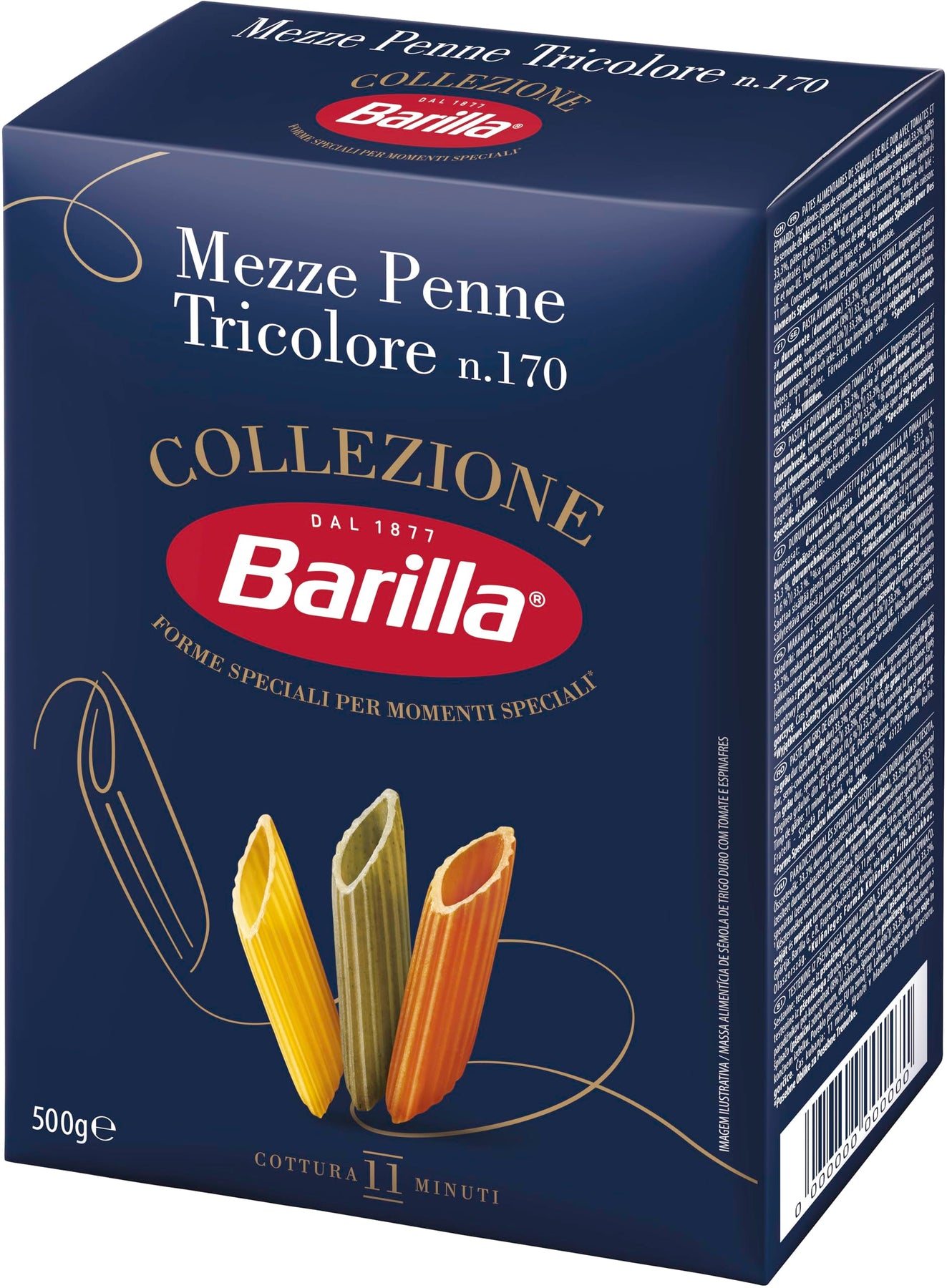 Elevate your pasta dishes with Barilla Hard Wheat Pasta Collezione Mezze Penne Tricolore, a premium tri-color pasta that combines tradition with innovation. Inspired by the Italian flag, this pasta features classic durum wheat semolina blended with spinach and tomato for a vibrant, flavorful twist. The mezze penne shape, with its tube design and angled ends, captures sauces beautifully, ensuring every bite is full of flavor.