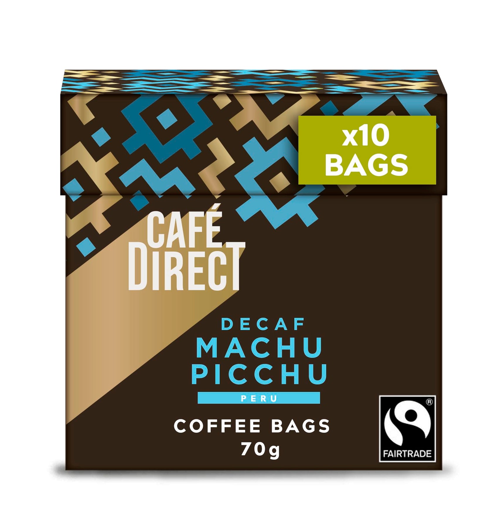 Enjoy the rich, full-bodied taste of Cafédirect's Machu Picchu Decaf coffee bags, sourced from specialty-grade Arabica beans grown in the Peruvian Andes. Individually wrapped for freshness, these coffee bags deliver deep dark chocolate overtones with a smooth, decaffeinated finish—perfect for home or on-the-go brewing. A simple upgrade from instant coffee, just add hot water and brew for 4 minutes for optimal flavor.