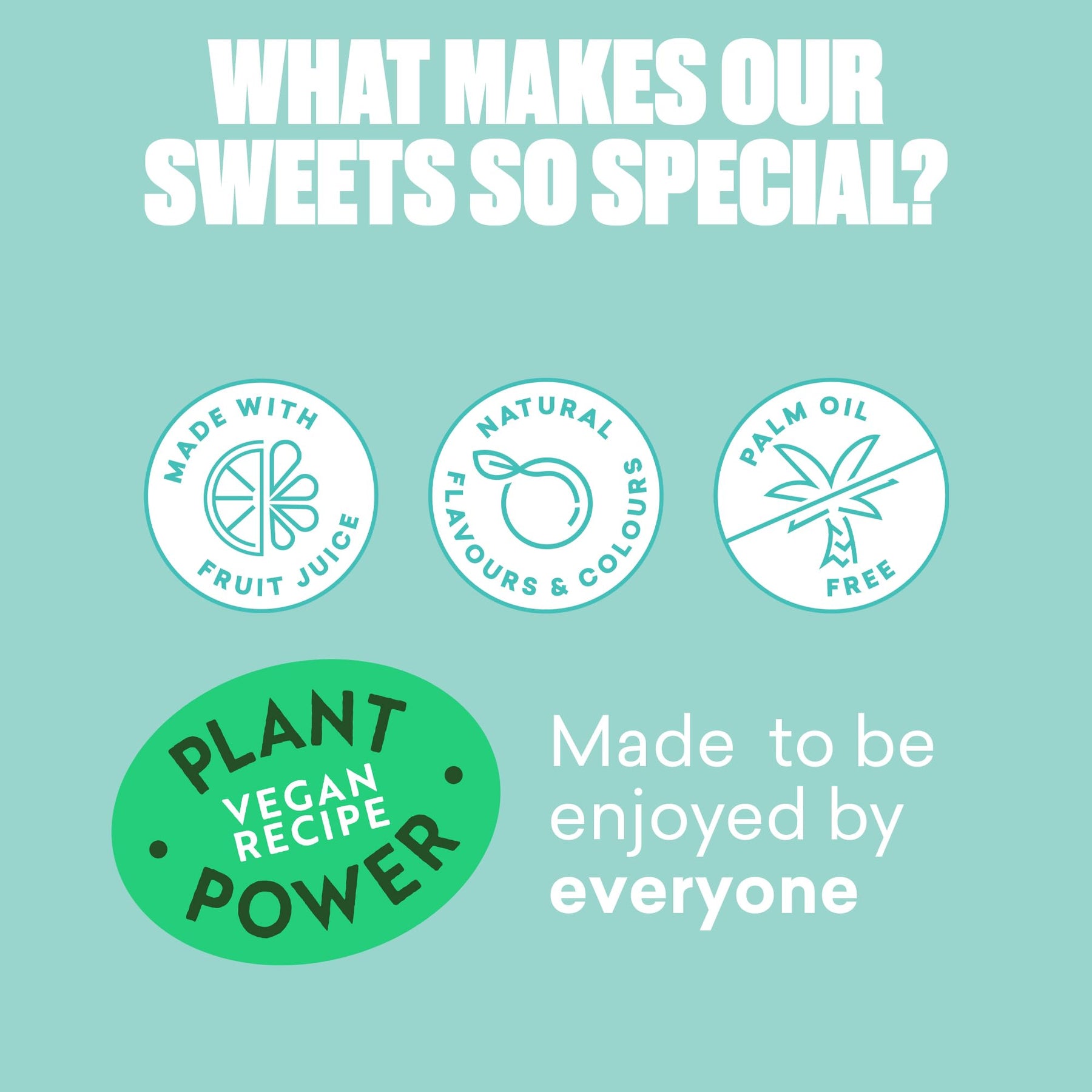 • 100% Plant-Powered: Made without gelatine or fake ingredients, these vegan sweets are certified plant-based and perfect for conscious snacking.