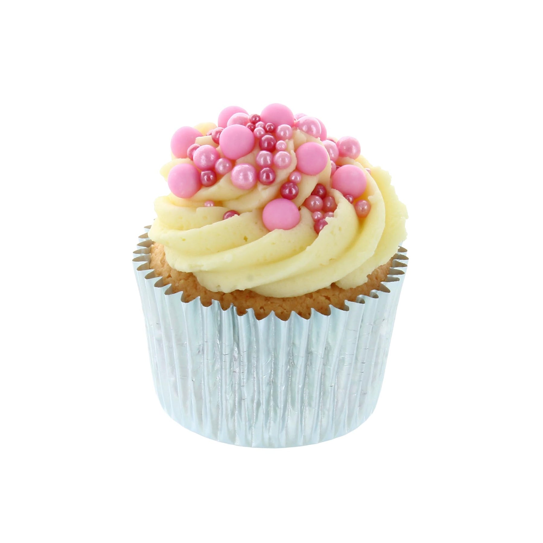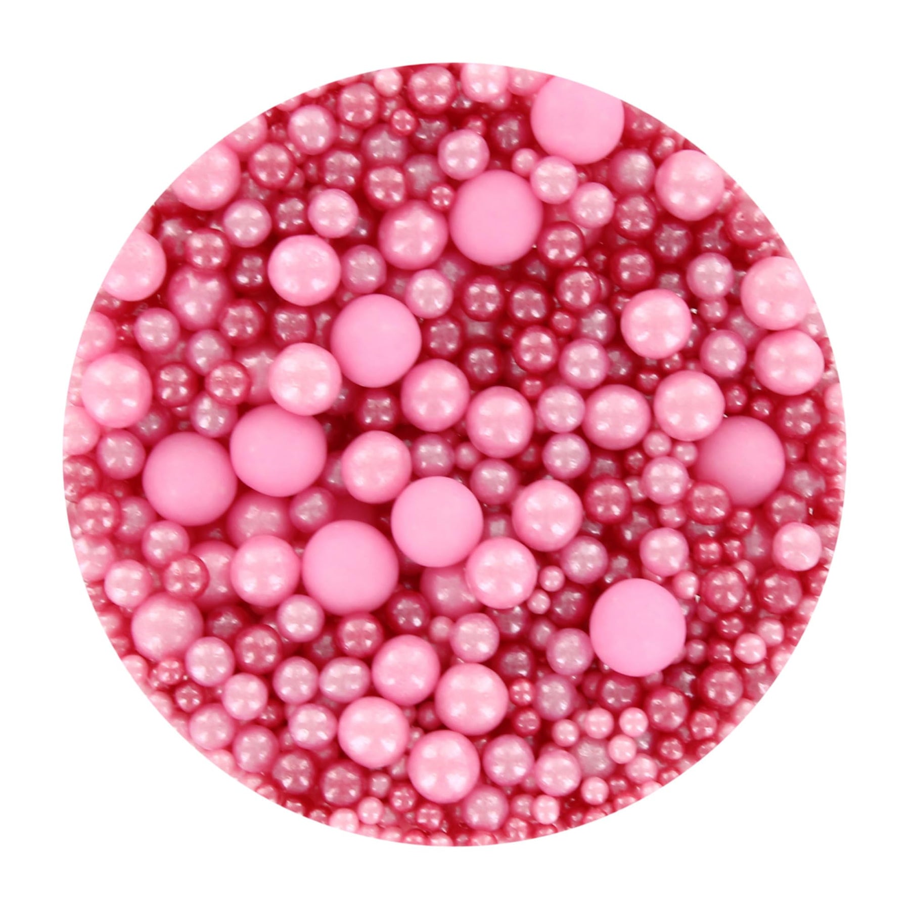 • Edible pink sugar pearl sprinkles in assorted sizes for visual impact