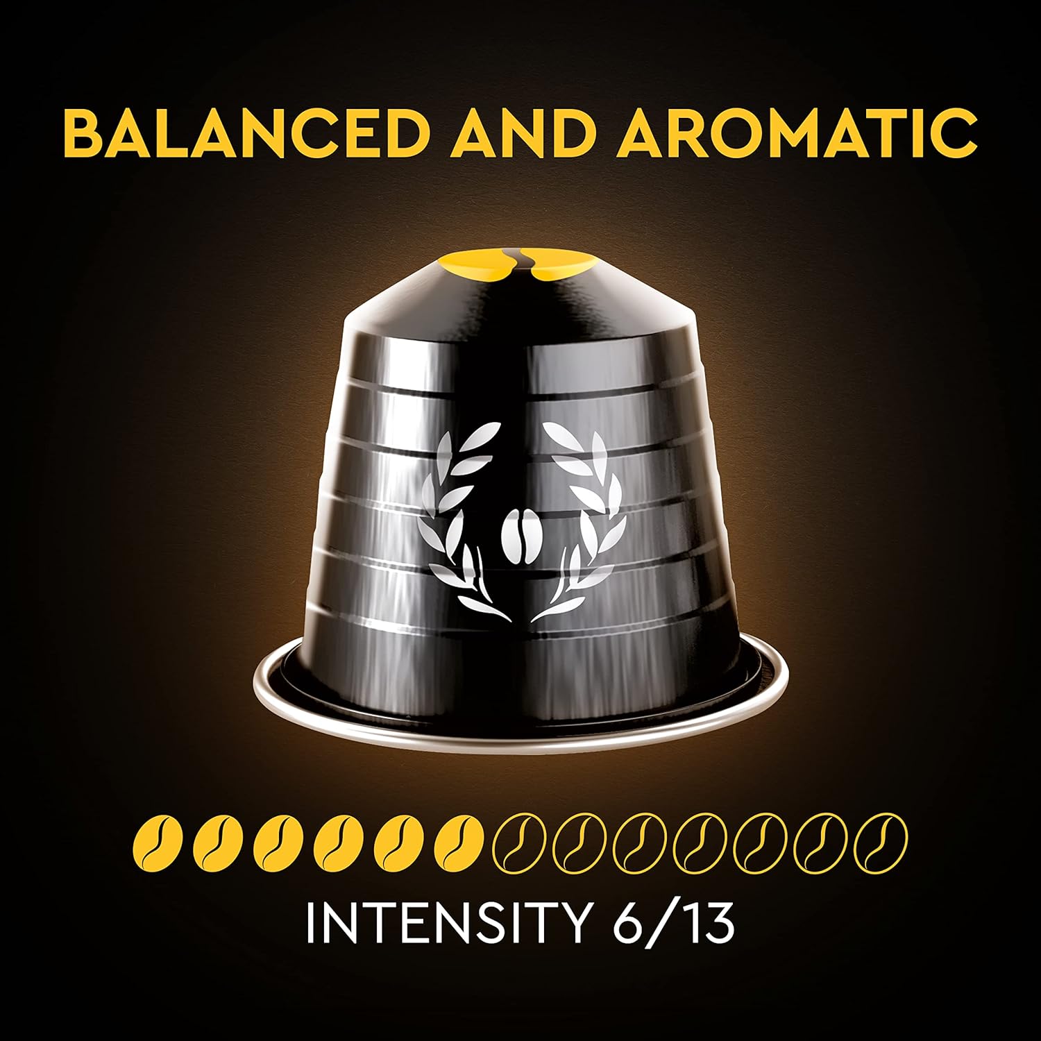 Espresso Lungo by Carte Noire offers a generous and well-rounded coffee experience, crafted for those who appreciate a rich, aromatic blend. With a balanced profile featuring roasted, nutty notes and a delicate hint of fruit, this 100% Arabica coffee delivers a full-bodied cup with a smooth texture. Expertly roasted to a level 8/10 intensity, it reveals over 1000 aromatic notes through the skill of Carte Noire's Master Roasters.