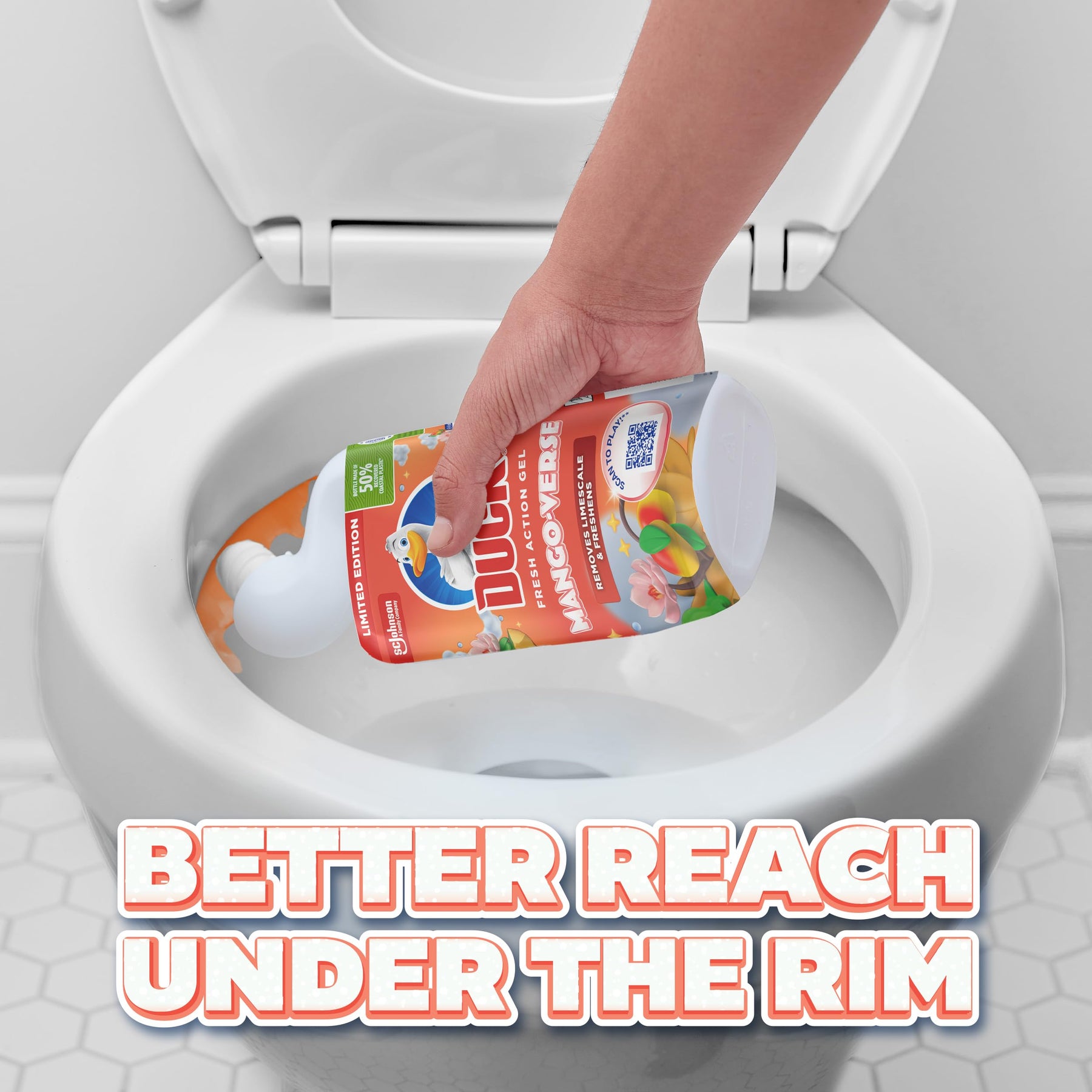 Power up your toilet cleaning routine with Duck Deep Action Gel Toilet Cleaner Liquid in the limited-edition Mango Verse fragrance. Designed to deliver a fresh, invigorating clean, this gel formula tackles limescale, mineral deposits, and toilet ring build-up for a brighter, whiter bowl with every use.