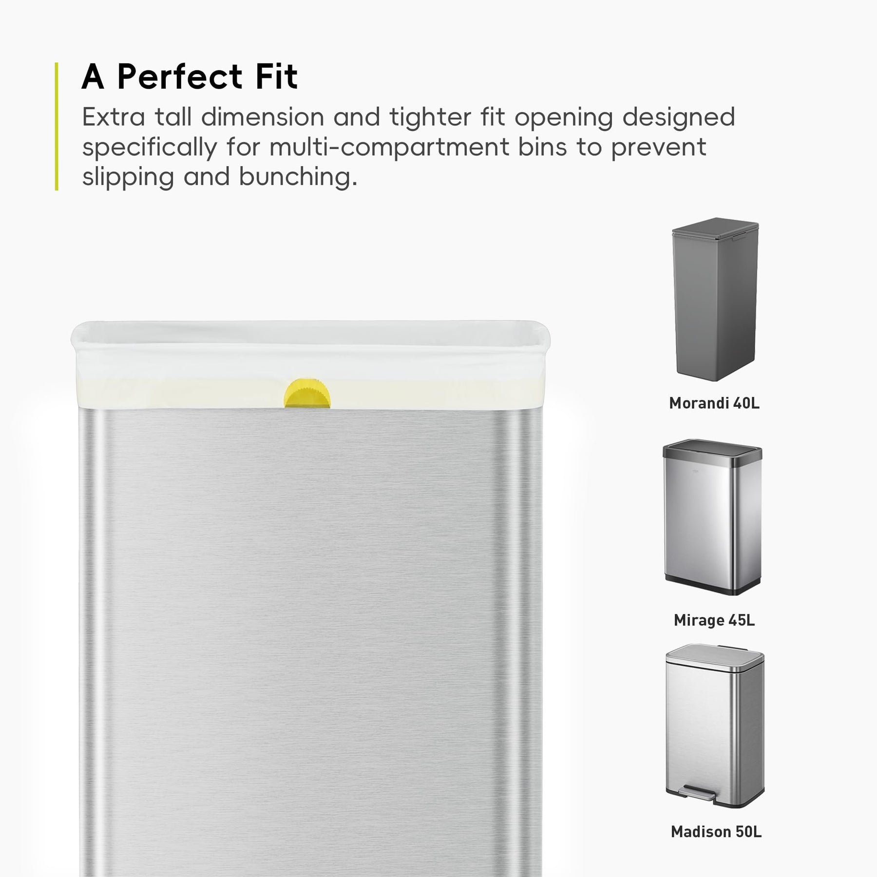 - Perfect Fit: Specially designed to fit EKO bins including Morandi 40L, Deluxe Phantom 45L, and Madison 50L. Dimensions: 65 x 75 cm, open perimeter 126 cm, suitable for 40-60 litre bins.