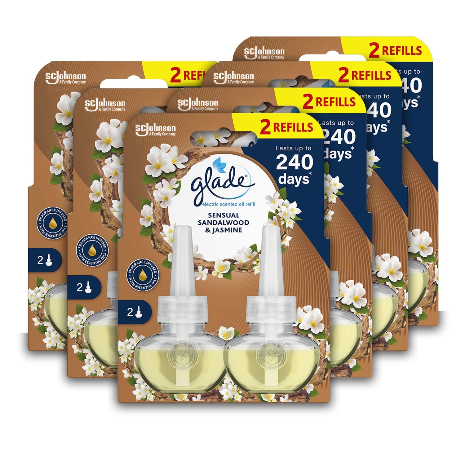Enhance your home's ambiance with Glade Sensual Sandalwood & Jasmine Plug in Air Freshener Refill, designed to elevate the energy in any room with its rich, floral fragrance. Infused with essential oils and featuring notes of jasmine petals, creamy sandalwood, and musk, this refill brings a lasting feeling of clean and comfort to your living spaces.