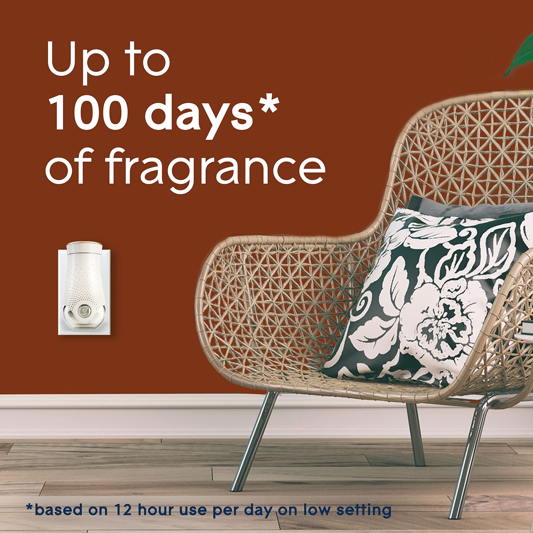 - Up to 240 days of fragrance (based on 12 hours of use per day on low setting)