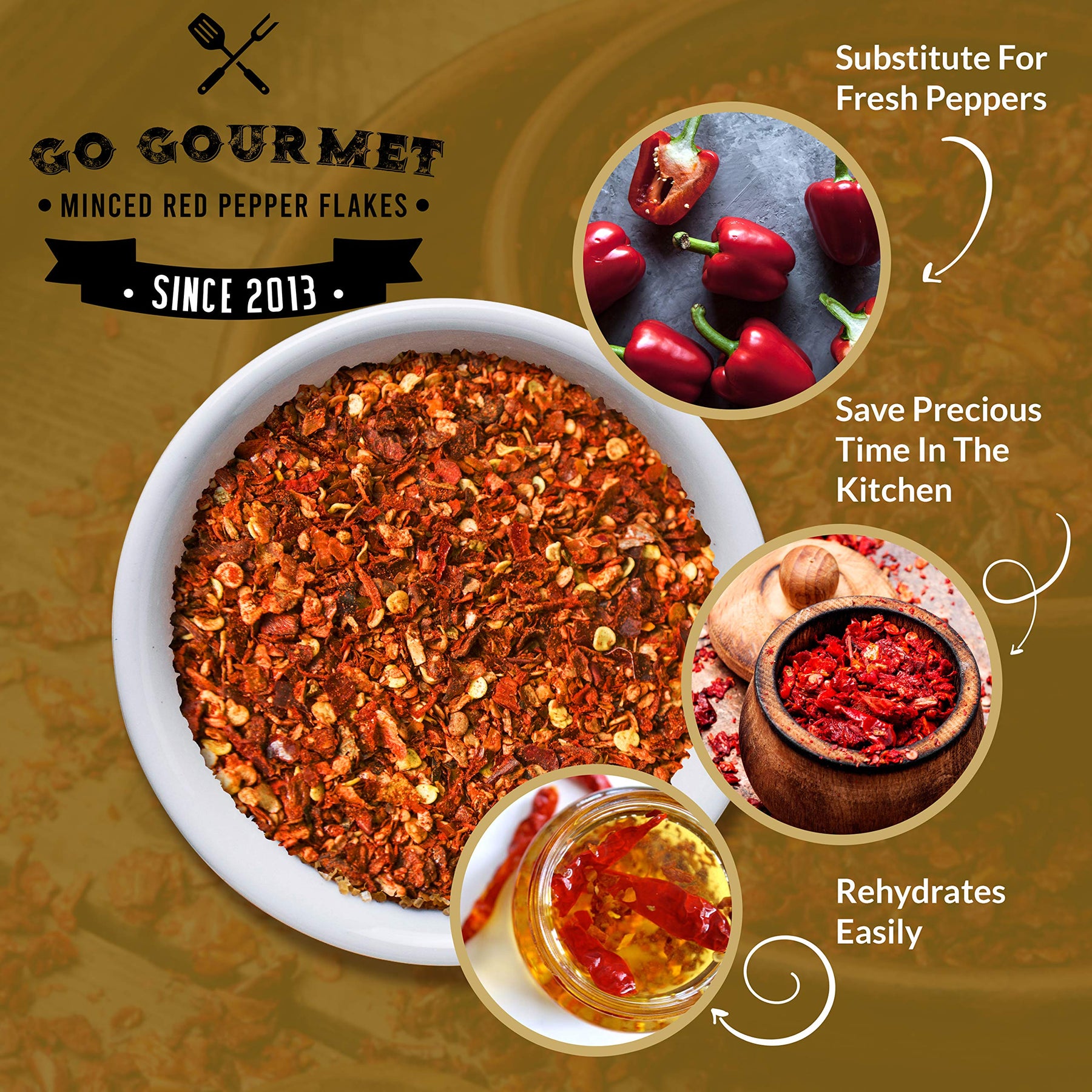 Go Gourmet Minced Red Pepper Flakes - Dehydrated Red Bell Peppers 6-9mm