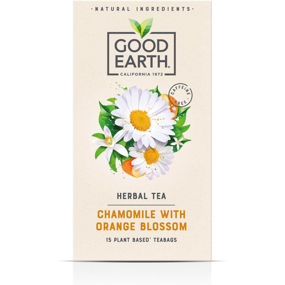 Unwind with the soothing aroma and flavor of Good Earth Tea Co.'s Chamomile with Orange Blossom Herbal Tea. This naturally caffeine-free blend combines gentle chamomile, bright orange peel, and fragrant orange blossom for a calming experience perfect for relaxation at home. Ideal for evening rituals or mindful moments during the day, this tea brings a touch of wellness to your daily routine.