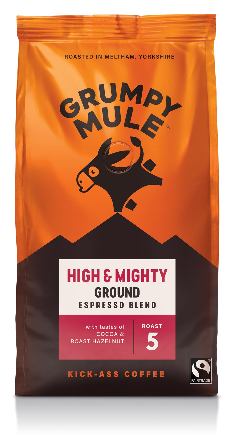Experience kick-ass coffee with a bold taste from Grumpy Mule's High and Mighty Espresso Blend. Sourced from high-grown, specialty-grade 100% Fairtrade Arabica beans from Brazil and other seasonal origins, this full-bodied roast delivers rich notes of cocoa and roast hazelnut. Roasted in Meltham, Yorkshire with stubborn attention to detail, every pack ensures consistently great flavor. For every purchase, 20p supports the Peak District Foundation—great coffee that gives back.