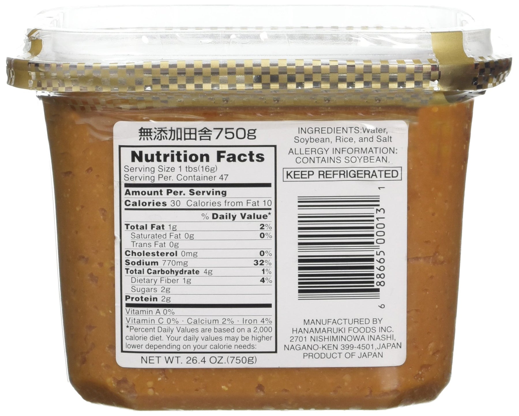 • Made from soy beans (32%), rice, salt, and water