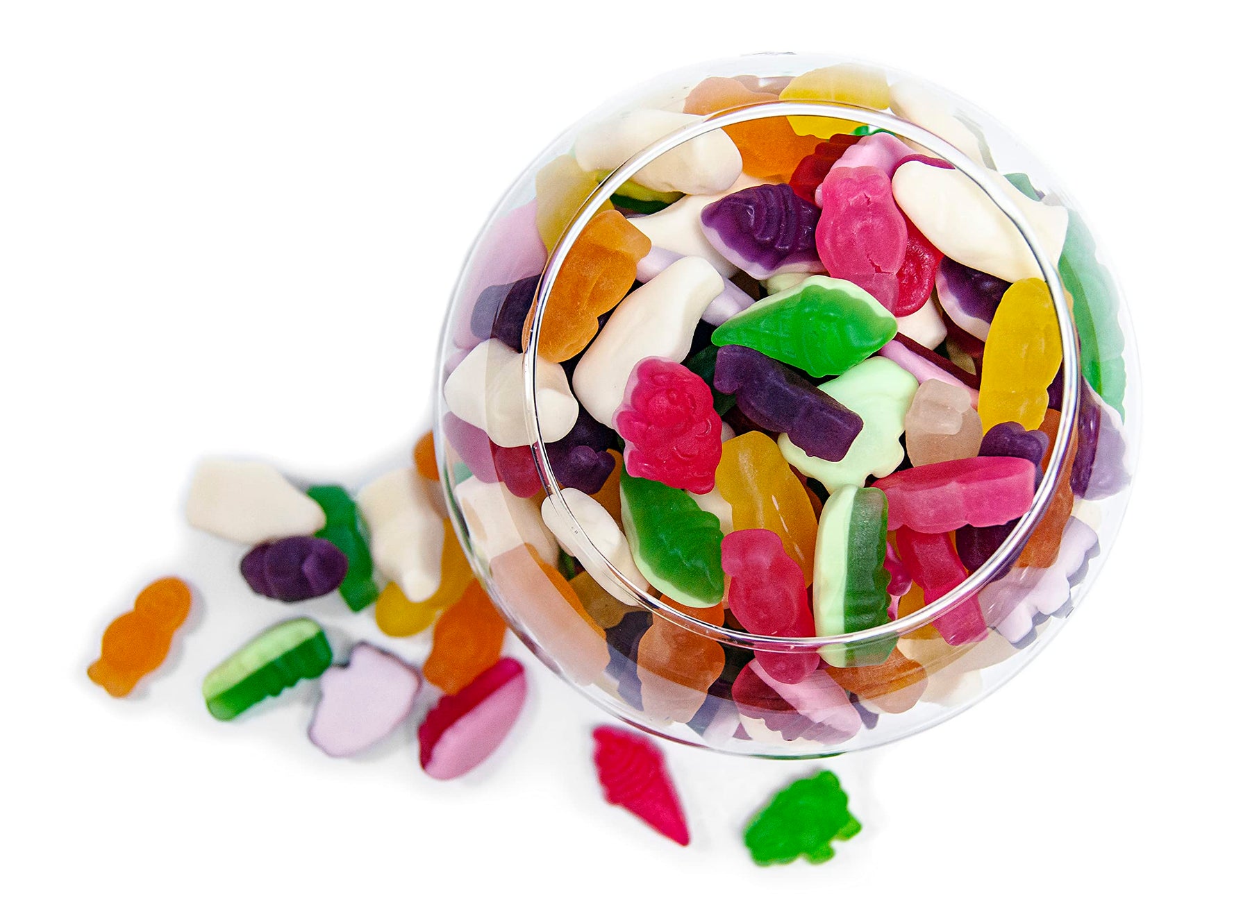 Ingredients: Glucose syrup; sugar; gelatine; dextrose; acid: citric acid; fruit and plant concentrates: apple, aronia, beetroot, bilberry, blackcurrant, carrot, elderberry, grape, lemon, mango, orange nacsion fruit, radish, safflower, spirulina, sweet potato; sunflower oil davowing; glazing agent: beeswax; caramelised sugar svrup; elderben extract.