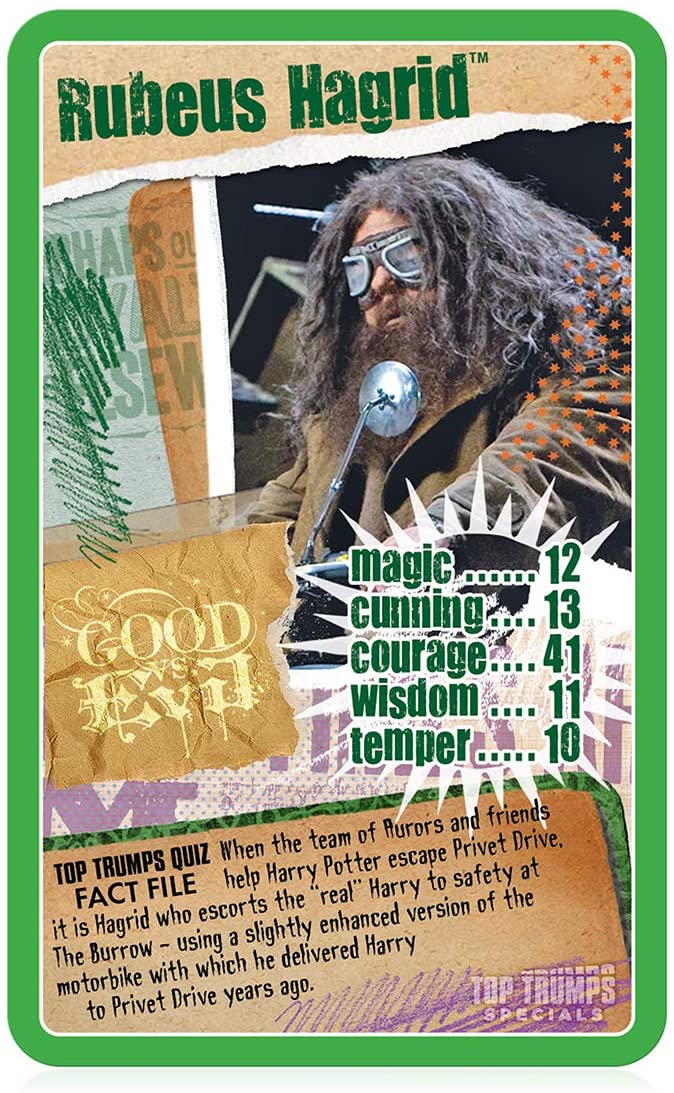 Join Harry, Hermione and Ron as they search for Lord Voldemort’s Horcruxes, fulfilling Dumbledore’s wishes. Now that Hogwarts has fallen into the hands of the sinister Professor Snape, truths will be told, heroes will be made and adventures will be had! And Top Trumps is there to cover every step!