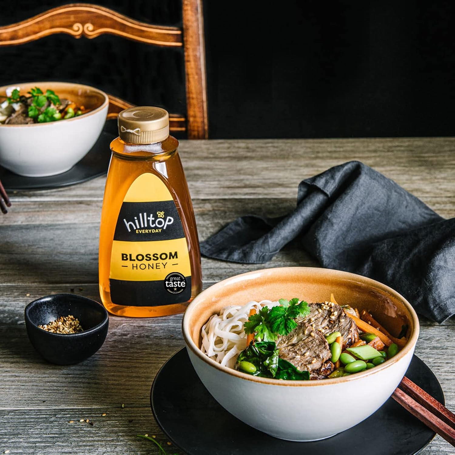 Hilltop Honey Blossom Honey is a pure and natural honey, carefully crafted for consistent taste, colour, and aroma throughout the year. With nothing added and nothing taken away, this amber-hued honey delivers rich, authentic flavour in every drop. Recognized with a Great Taste Award 2021, it's a favourite among honey lovers across the UK.