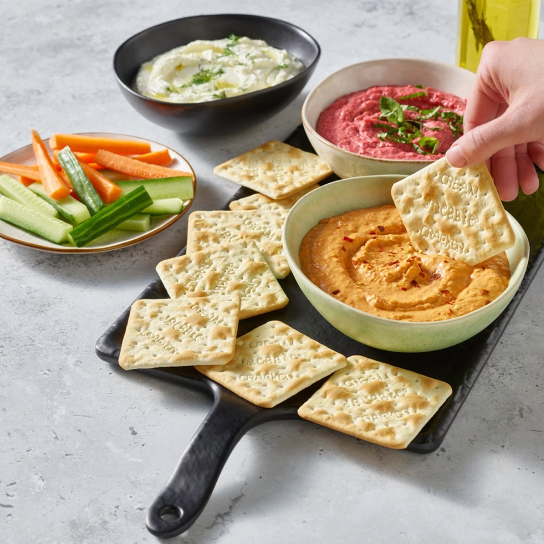 The original and the best – Jacob's Cream Crackers are the perfect savoury snack with a satisfyingly crispy texture. These classic crackers are ideal for topping with your favourite combinations, from traditional cheddar cheese and tomato to roast chicken and pesto. Made with simple ingredients including wheat flour, palm oil, and a hint of salt, they deliver a delicious, wholesome taste in every bite.