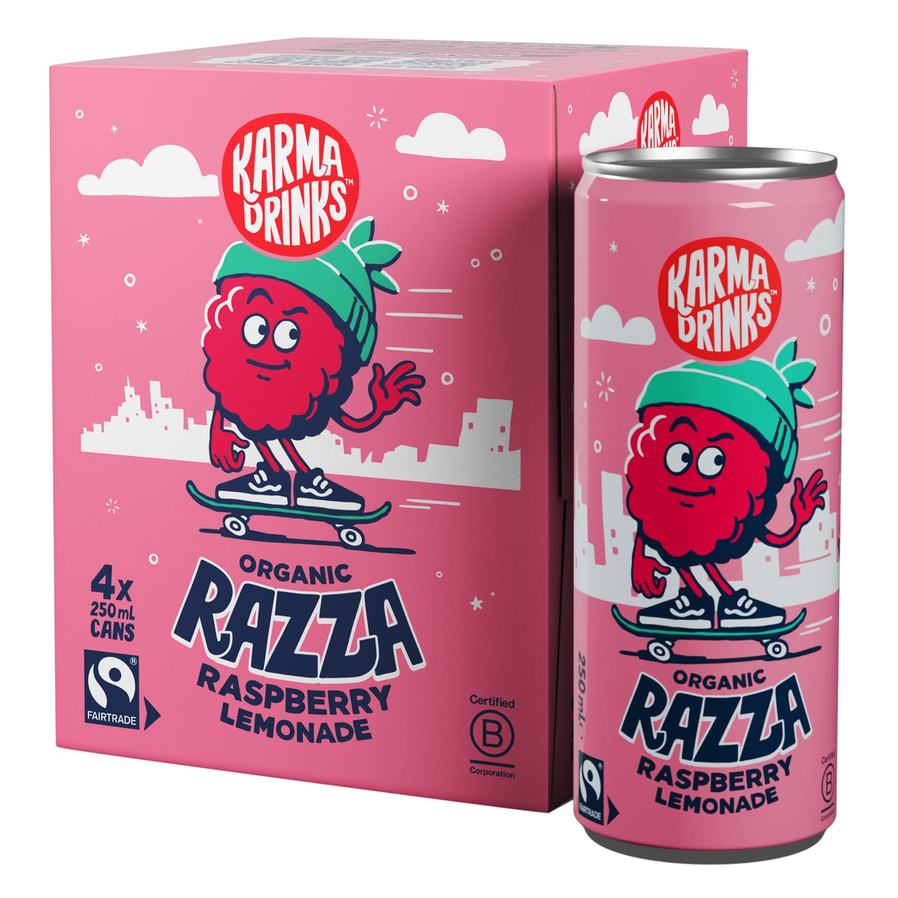 KARMA DRINKS Razza Raspberry Lemonade - Organic Gluten-Free Sparkling Drink (250ml x 4 Cans)