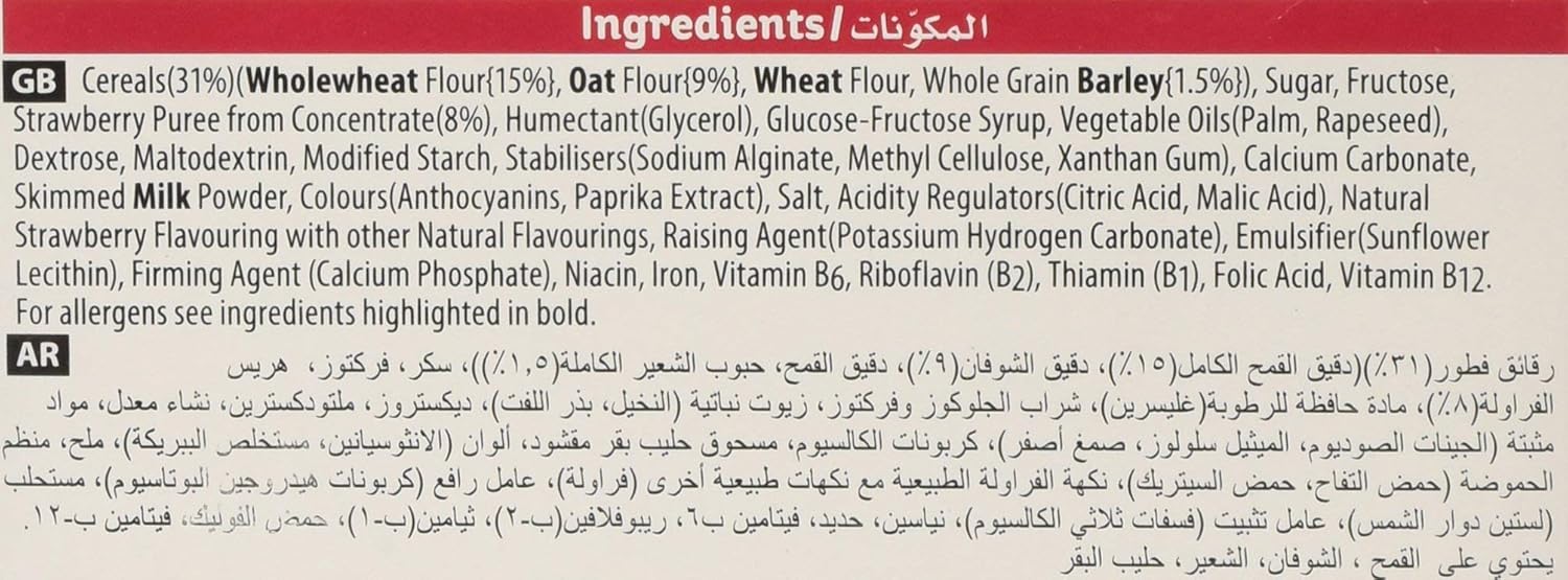 • Soft baked cereal bar with strawberry filling