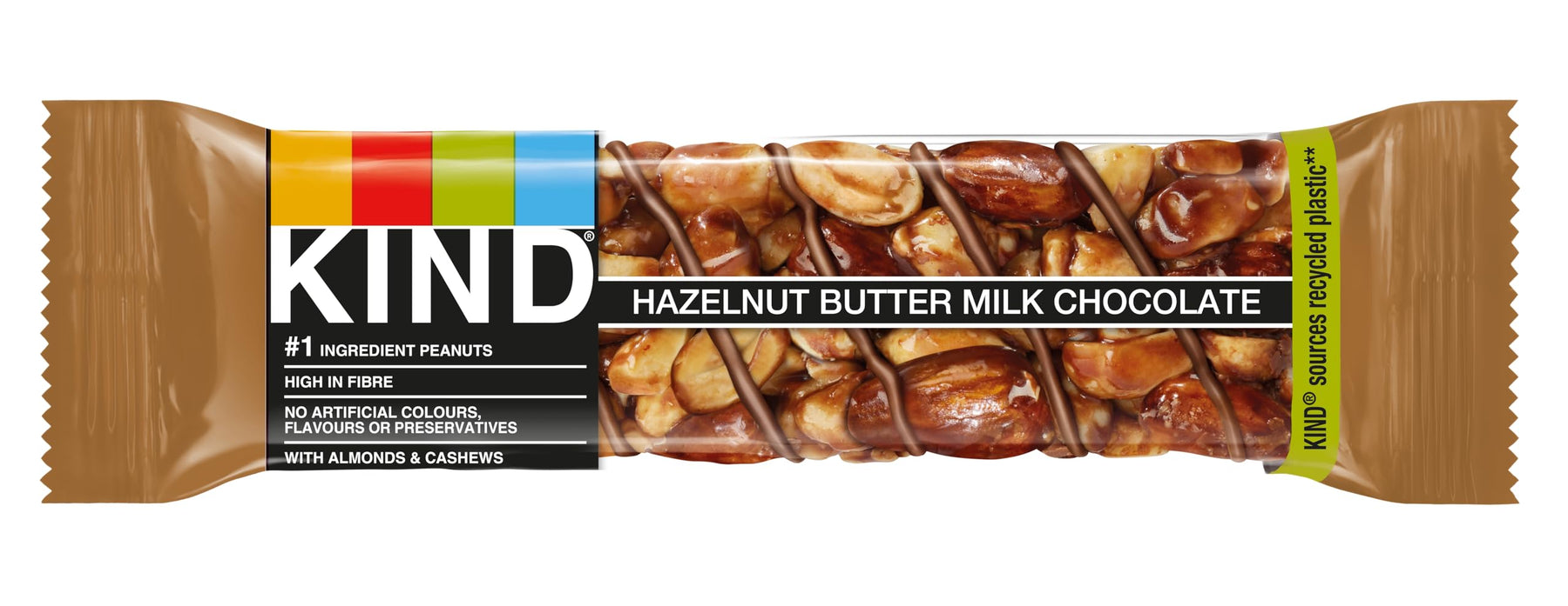 KIND Hazelnut Butter Milk Chocolate Snack Bars, Gluten Free, High Fibre, No Artificial Ingredients, 12 x 40g