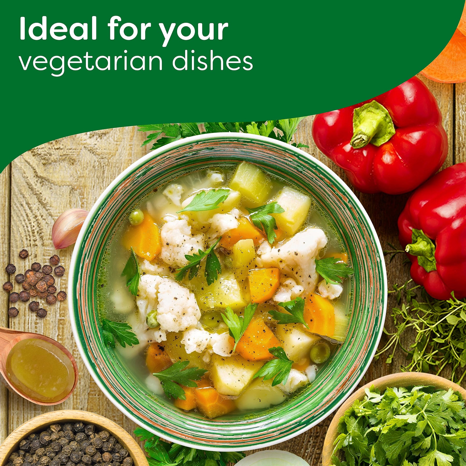 These stock cubes are crafted with free-range chicken and sustainably farmed vegetables, reflecting Knorr’s commitment to quality and sustainability. Explore more recipes and discover other salt-free variants like Beef or Vegetable on the Knorr website. Ideal for creating delicious, flavourful meals without compromising on dietary needs.