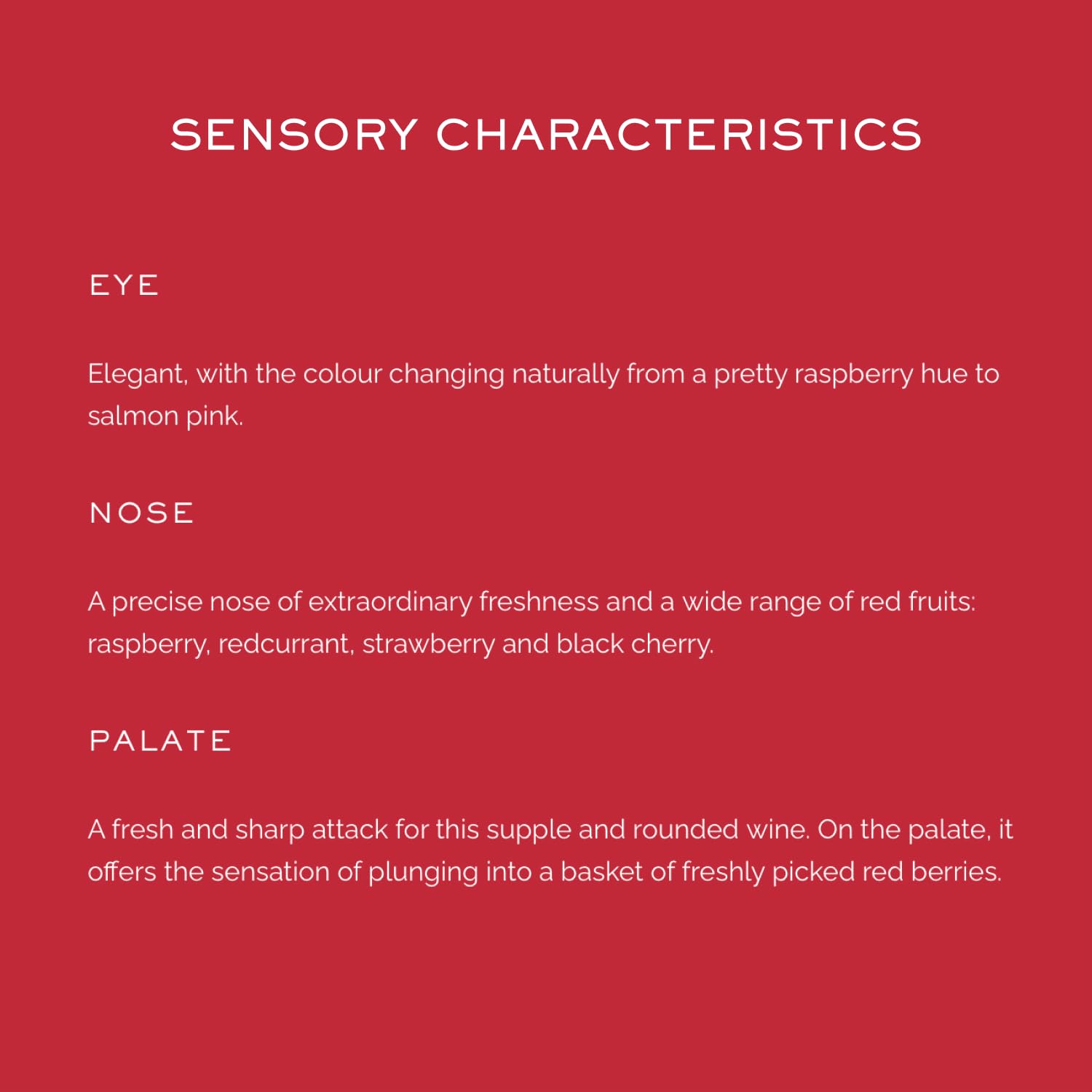• Palate: Fresh, slightly sharp attack with a supple, rounded texture that evokes a basket of freshly picked red berries