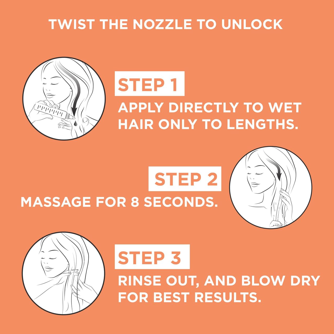 - After shampooing with Dream Lengths Shampoo, apply 1 dose to wet lengths for fine to medium hair; use 2–3 doses for thick, curly, or extra-long hair