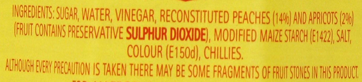 Mrs H.S. Ball's original recipe fruit chutney is a unique South African spicy fruit condiment that adds a distinctive flavour to any meal. With a round, attractive palate and plenty of character, it can be used as a condiment or meat marinade to elevate your cooking. Made with reconstituted peaches (14%), apricots (2%), sugar, vinegar, modified maize starch (E1422), salt, colour (E150d), and chillies, this chutney delivers a balanced sweet and spicy taste.