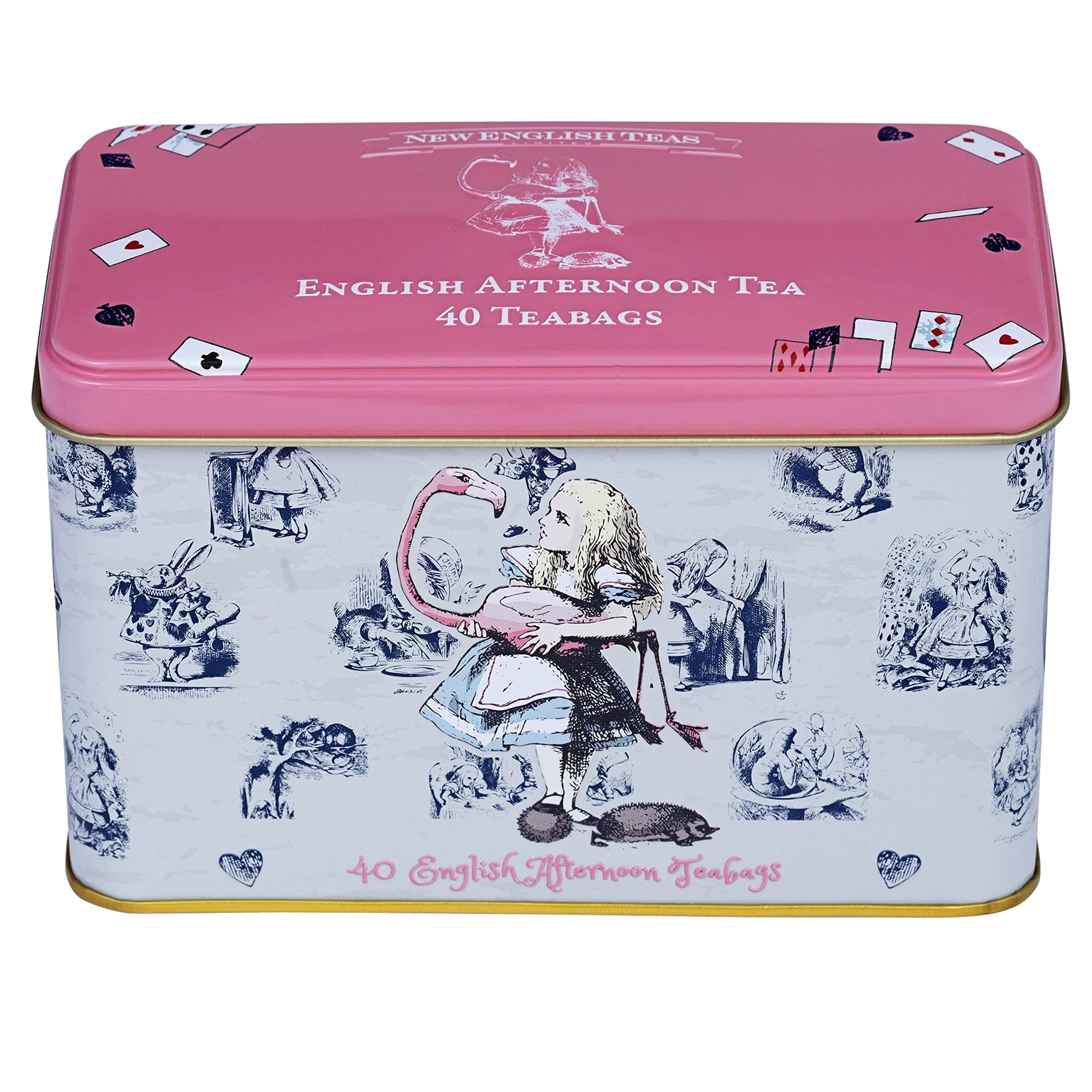 Indulge in a whimsical tea experience with the New English Teas Pink Alice in Wonderland Tea Caddy. This beautifully illustrated tea tin features original artwork from Lewis Carroll's beloved classic, making it a charming centerpiece for any kitchen or tea lover's collection. Inside, you'll find 40 individually wrapped English Afternoon tea bags, sourced from Ceylon, Sri Lanka—a region renowned for producing some of the world's finest tea—delivering a medium-bodied, aromatic cup perfect with sandwiches and cakes.
