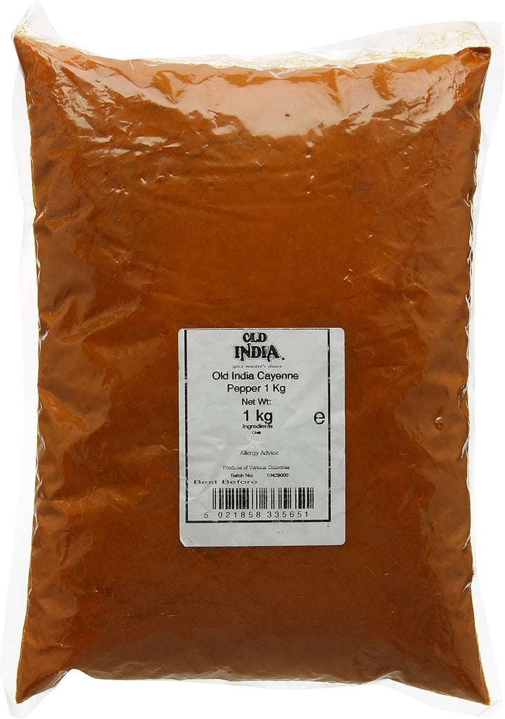 The product contains chilli, paprika, and sunflower oil, blended to deliver a consistent, vibrant taste. Packaged in a vegetarian atmosphere, it meets high standards of purity and authenticity. Each order includes 1 x Old India Cayenne Pepper 1 kg, making it a convenient choice for home cooks and professional chefs alike.