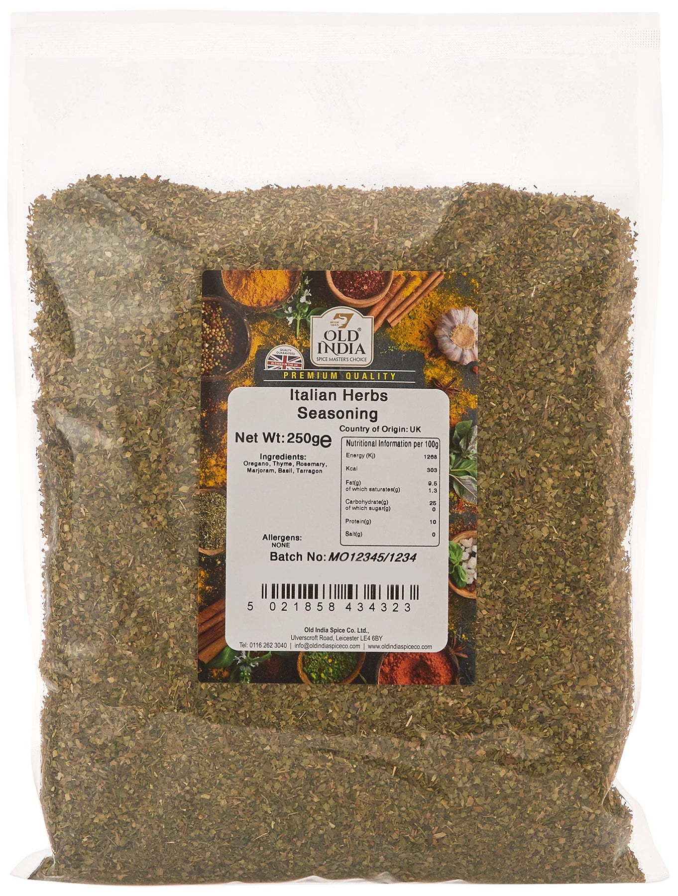 Old India Italian Herbs Seasoning is a premium blend of natural herbs including oregano, thyme, rosemary, marjoram, basil, and tarragon. Perfect for enhancing the flavor of curries, vegetable dishes, sauces, soups, stews, and more, this seasoning is crafted to deliver authentic taste in every use.
