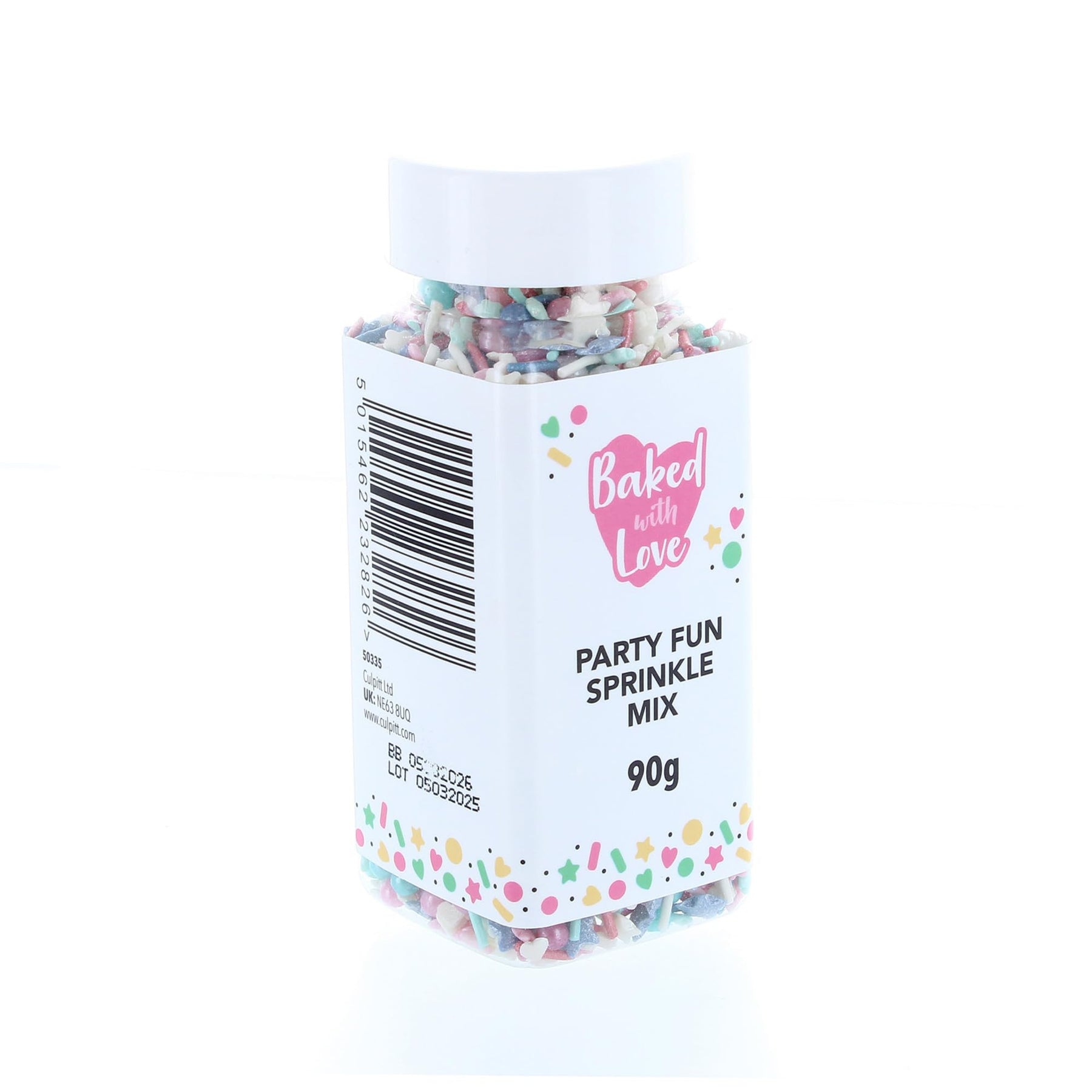 Baked with Love - Party Fun Sprinkles Mix | Blue, Pink & White Edible Cake Decorations | 90g Resealable Bottle