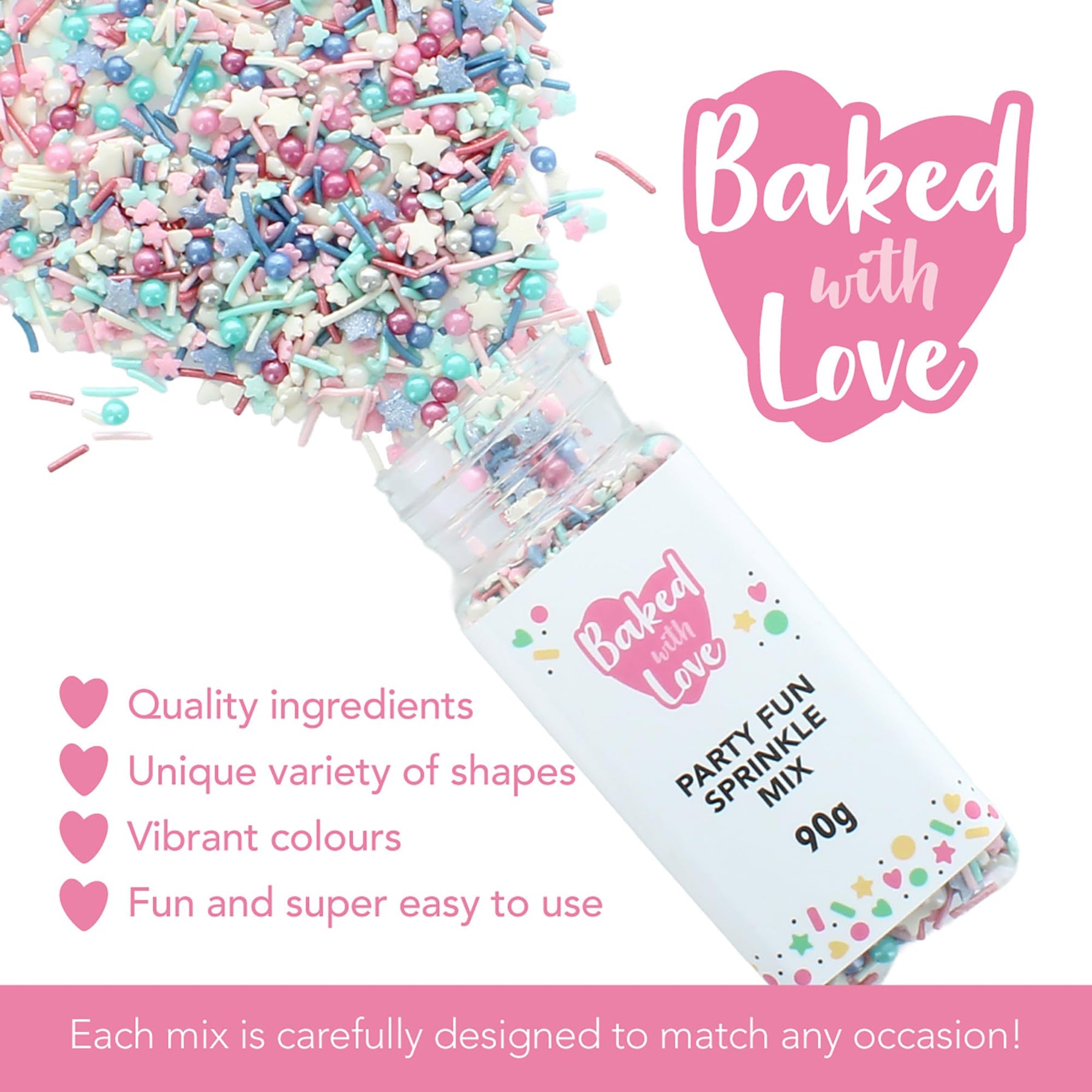Make every dessert a celebration with Baked with Love Party Fun Sprinkles—where flavor meets fun in every sprinkle!