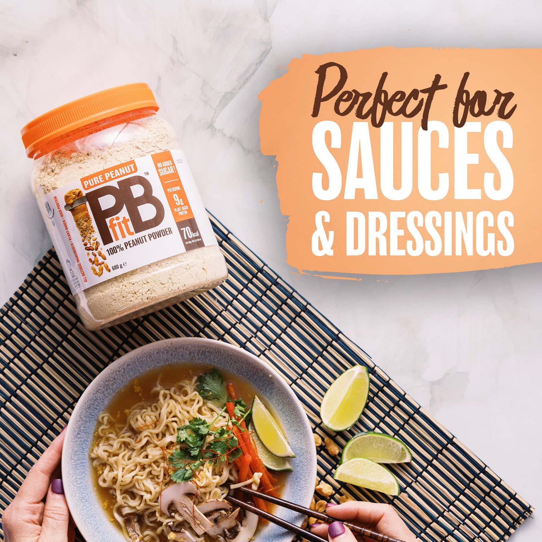 Gluten-free, dairy-free, soy-free, and non-GMO, PBfit Pure Peanut Powder fits a variety of dietary needs. Simply mix 2 tablespoons of powder with 1.5 tablespoons of water to create a smooth, spreadable peanut butter alternative perfect for sandwiches, oatmeal, or acai bowls. Use it to blend, bake, or shake into pancakes, cookies, waffles, and more for a delicious, high-protein peanut flavor boost.