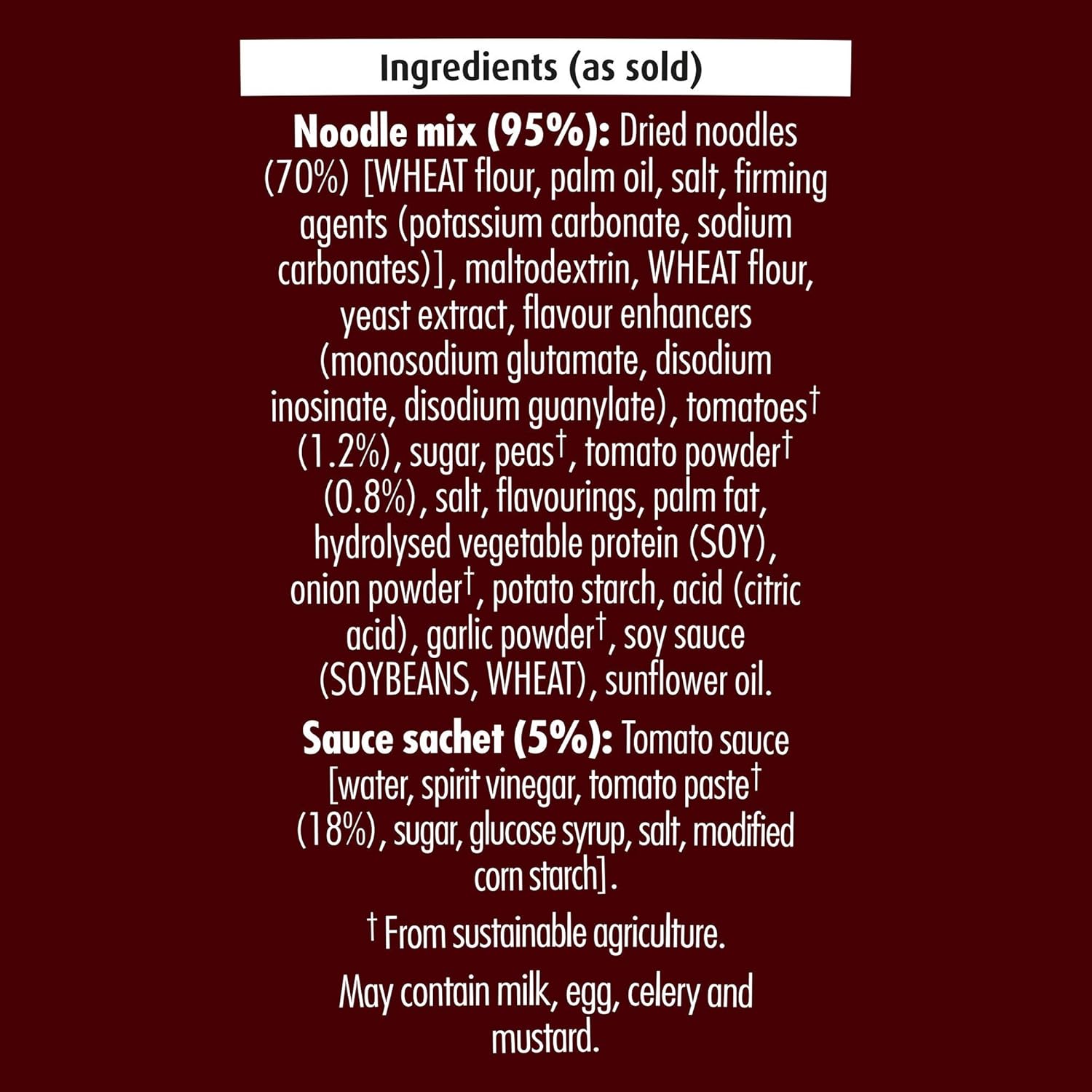 - Vegetarian instant noodles with a delicious beef & tomato flavour sauce