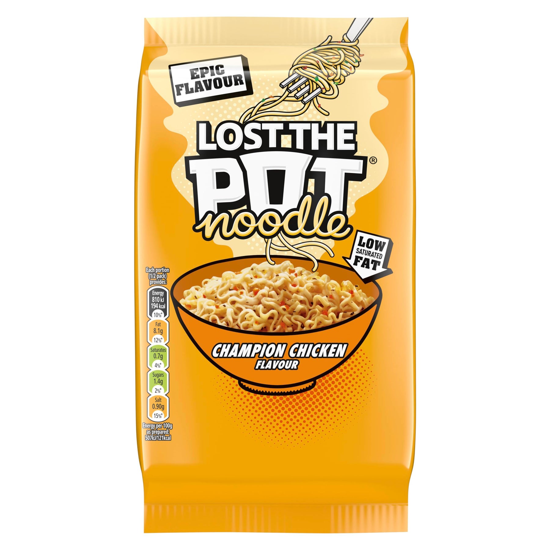 Lost the Pot Noodle Champion Chicken brings a bold new twist to instant meals, delivering a satisfying, flavour-packed chicken noodle experience without the pot. Perfect for quick dinners or tasty snacks, this convenient meal is ready in minutes and crafted by the nation’s favourite instant noodle brand.*