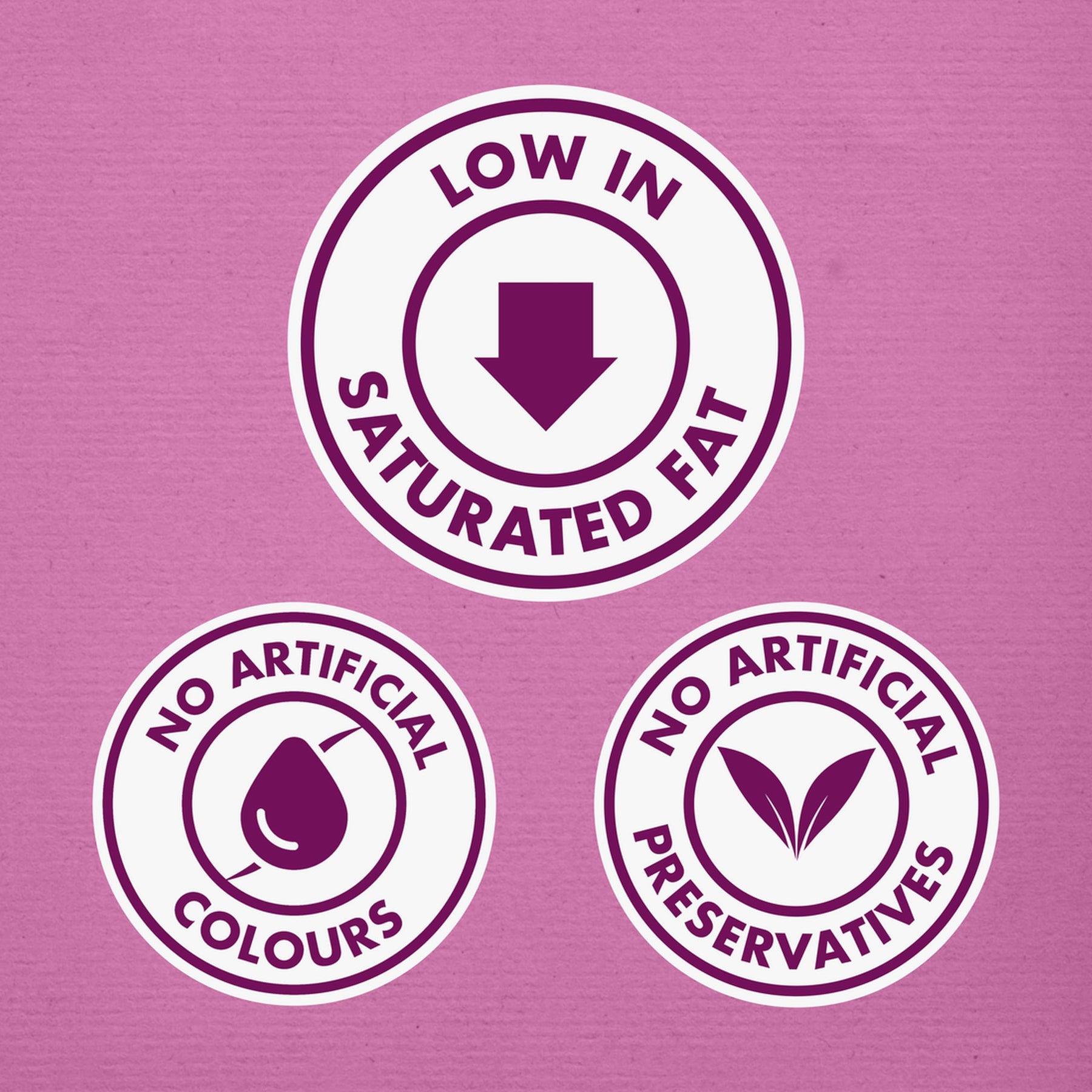 • Low in saturated fat and contains no artificial colours or preservatives