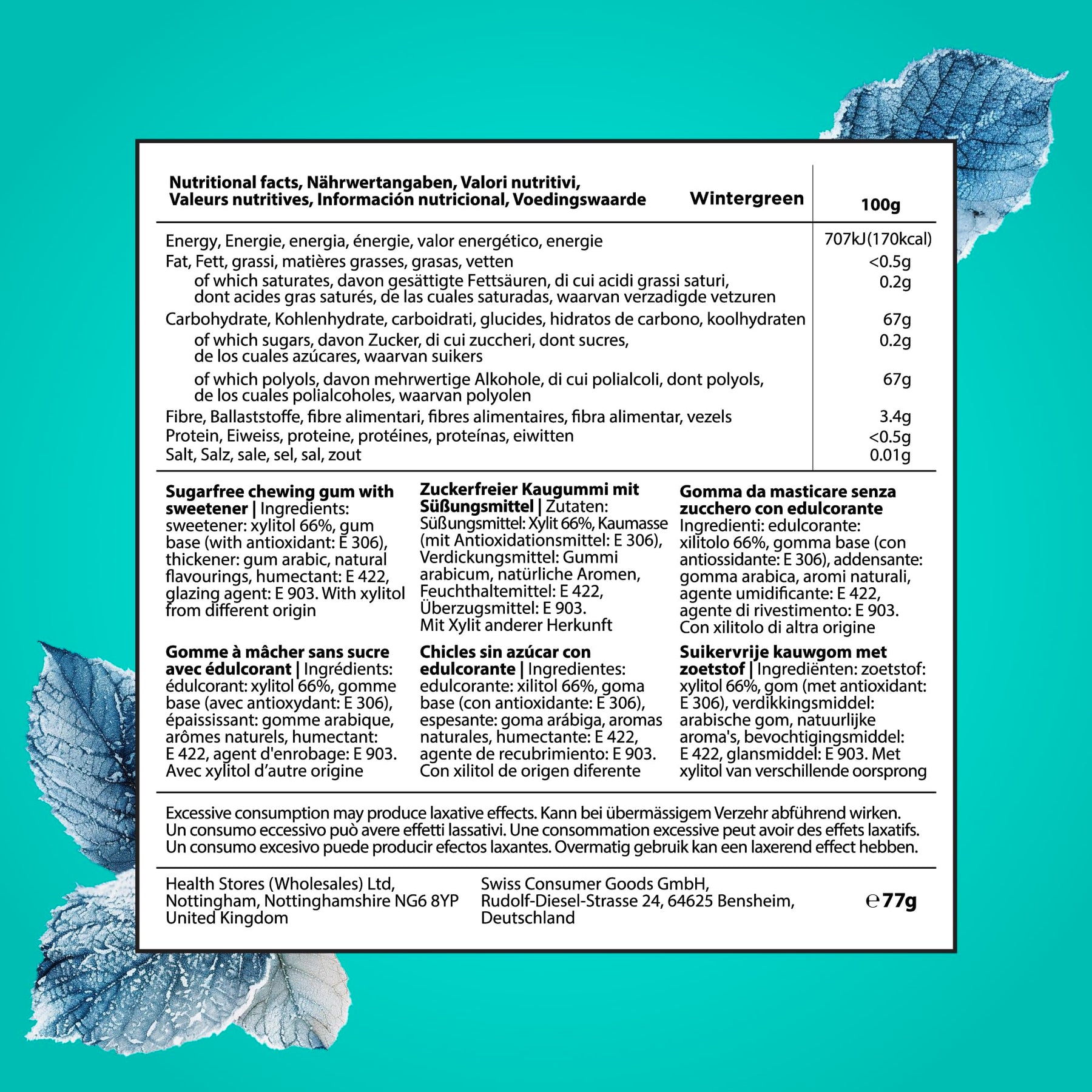 - Xylitol (66%) – a natural sugar alcohol that helps maintain dental health and provides sweetness with 40% fewer calories than sugar