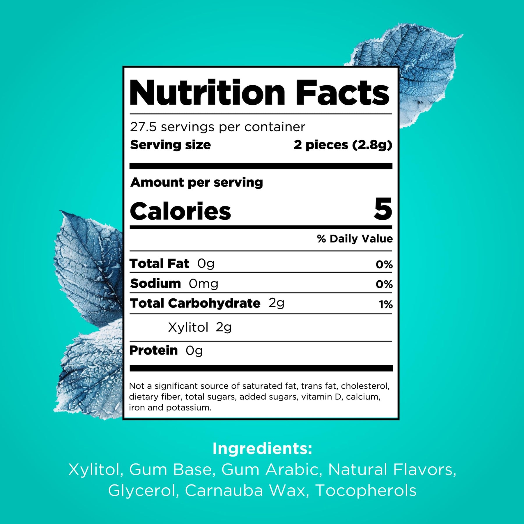 - Xylitol (66%) – a natural sugar alcohol that fights cavity-causing bacteria and provides sweetness with 40% fewer calories than sugar