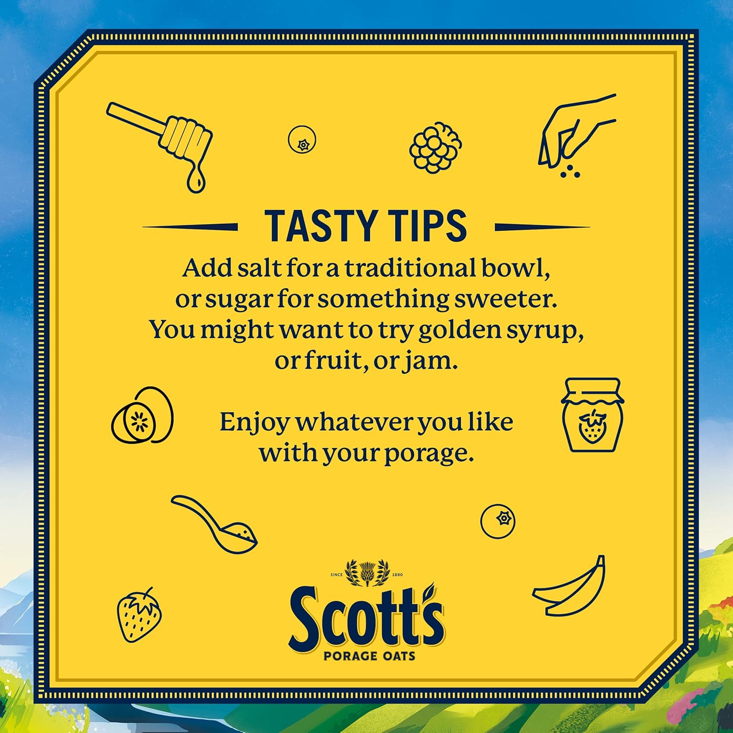 Scott's Porage Oats have been milled in Scotland since 1880, using only the highest quality oats and traditional milling processes. Each grain is carefully graded and selected to ensure only the best goes into every pack. These thicker rolled oats are gently kilned to create a distinctive taste that delivers the true flavor of Scotland.