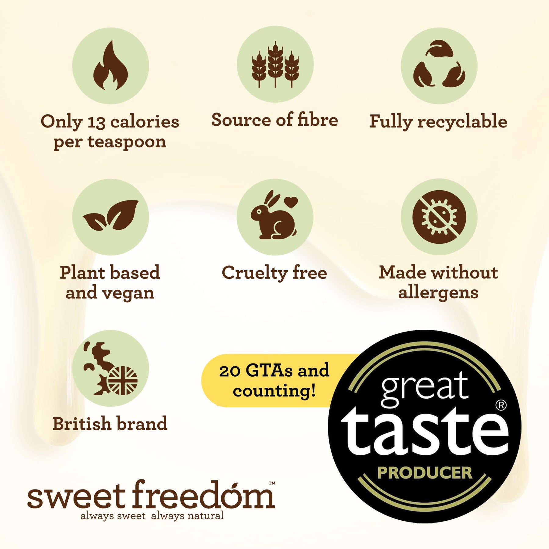 Sweet Freedom Butterscotch Syrup is a delicious, natural alternative to traditional syrups, perfect for enhancing your favourite drinks, desserts, and breakfast treats without refined sugar or artificial ingredients. Ideal for health-conscious households, this versatile syrup brings the rich, indulgent taste of butterscotch to your kitchen with a healthier profile.