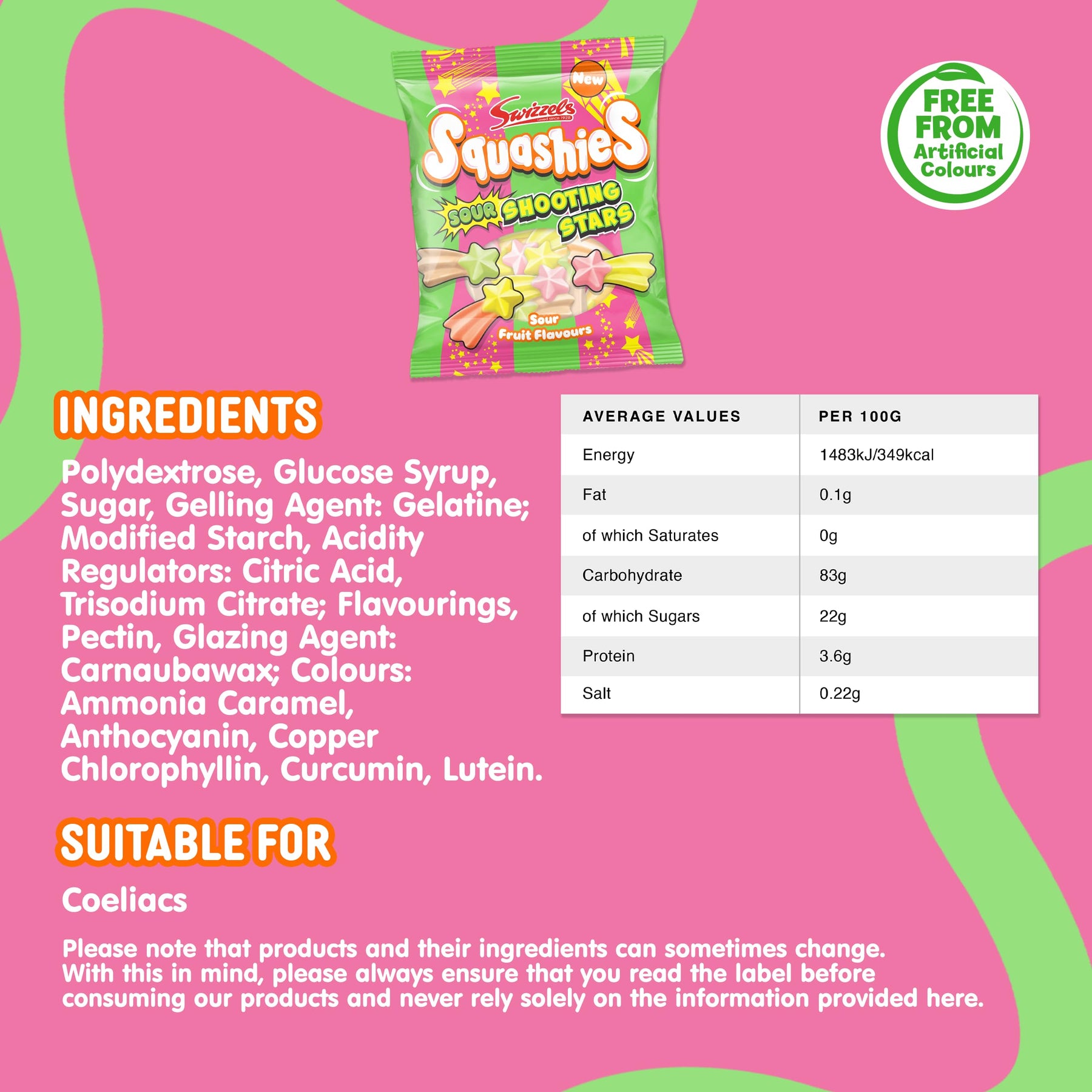 Indulge in the zesty, chewy fun of Swizzels Squashies Sour Stars – a must-have for lovers of sour and fruity sweets.