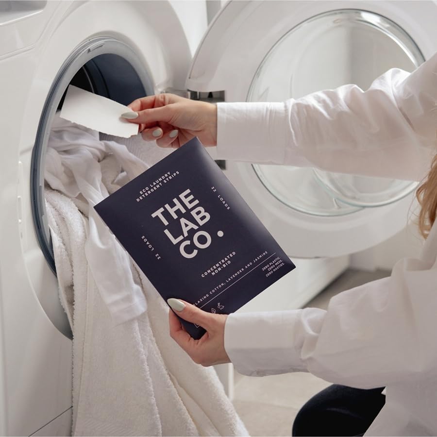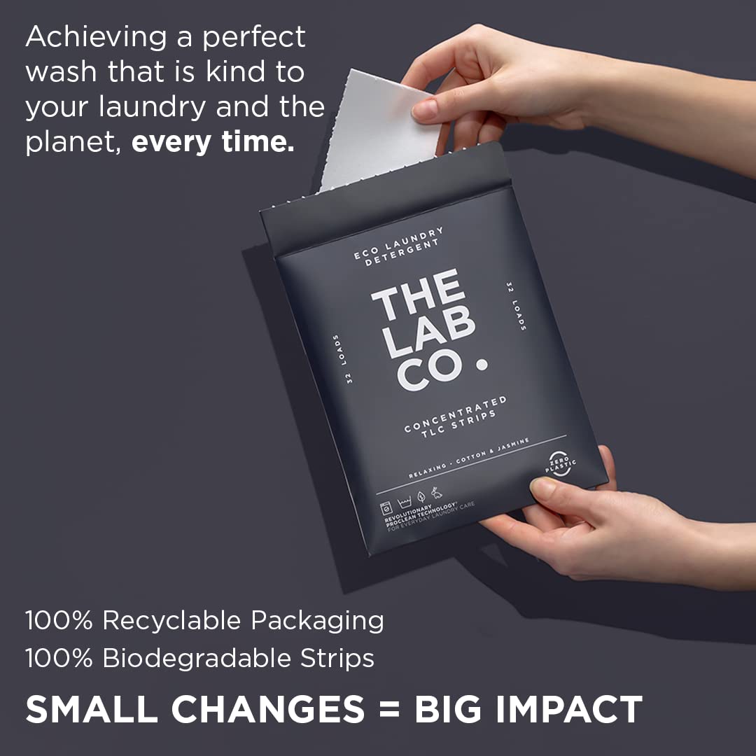 Elevate your laundry routine with The Lab Co. TLC Laundry Strips, an eco-friendly, ultra-concentrated solution designed for effective cleaning with minimal effort. These non-bio strips are perfect for sensitive skin and deliver a refreshing cotton lavender jasmine fragrance with every wash. One strip powers one full load, eliminating mess and measuring.