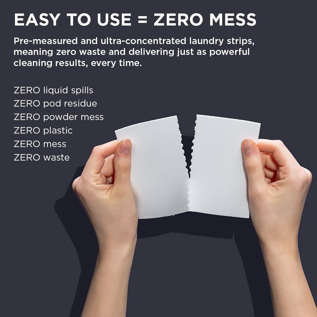 • No mess, no measuring – simply toss one strip into the drum