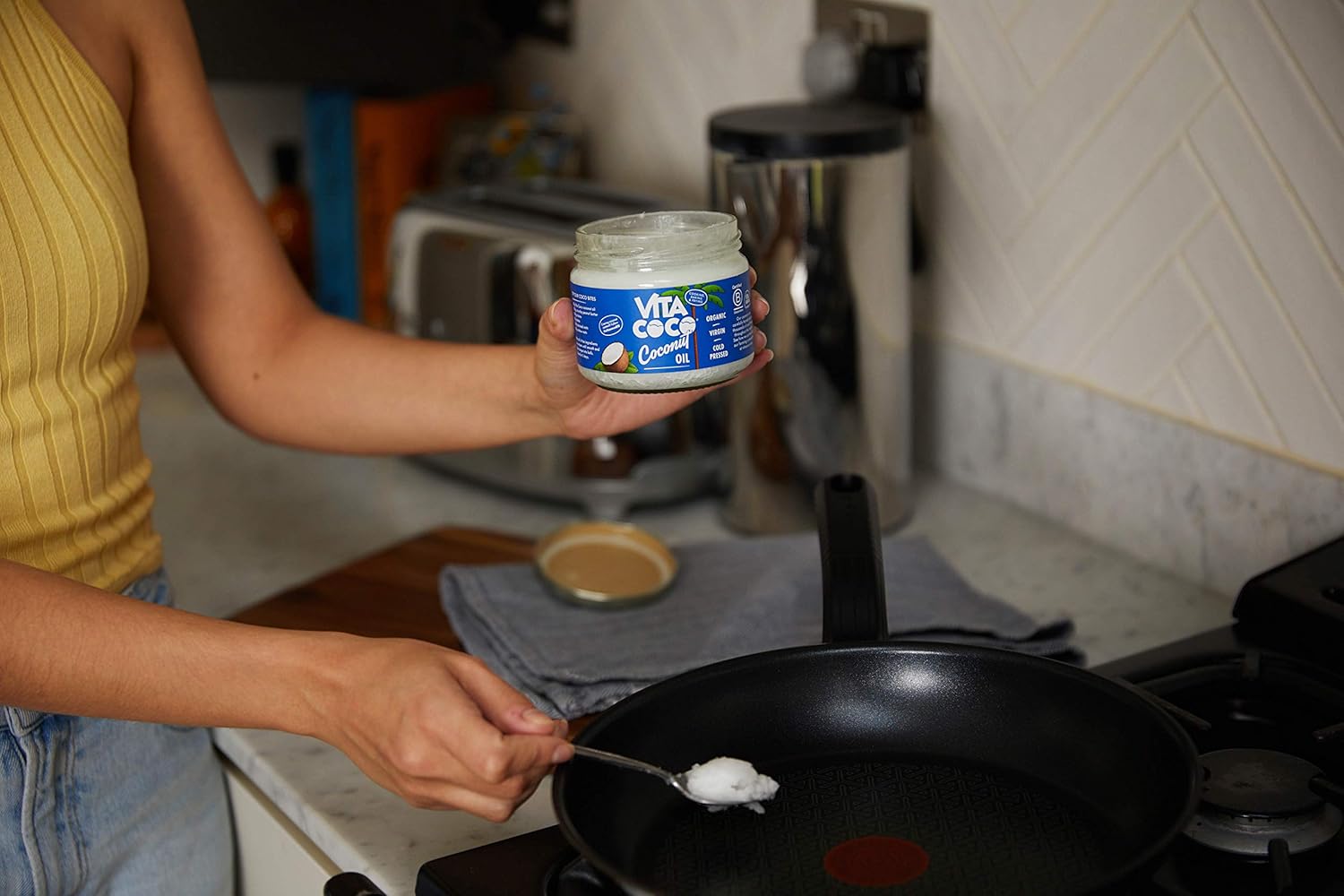 Vita Coco brings you 100% organic, cold-pressed extra virgin coconut oil, sourced from organically grown coconuts. This versatile, unrefined oil is USDA certified organic and Non-GMO, making it a natural choice for cooking, skincare, and haircare. With its rich tropical aroma and nutrient-rich composition, it's a staple for holistic wellness and beauty routines.