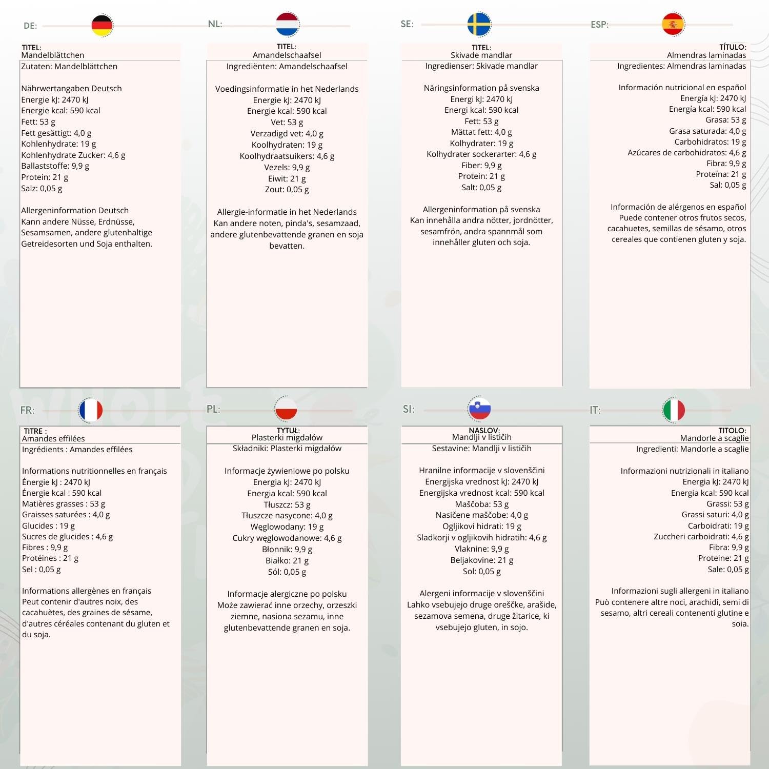 - Blanched and flaked for a smooth texture and reduced bitterness