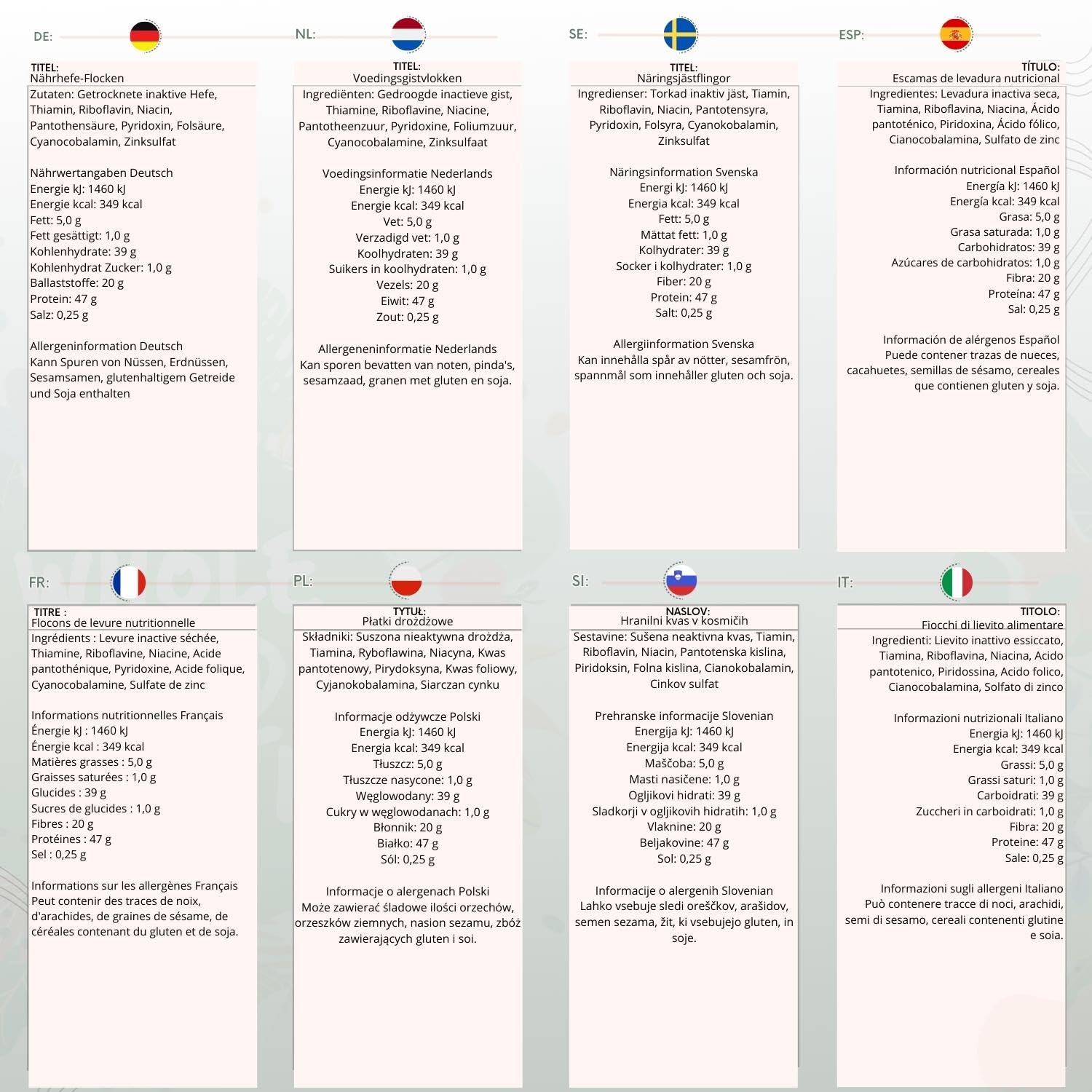 - Nutritional Yeast (Saccharomyces cerevisiae, inactive), fortified with Vitamin B12 (cyanocobalamin) and vitamin D yeast