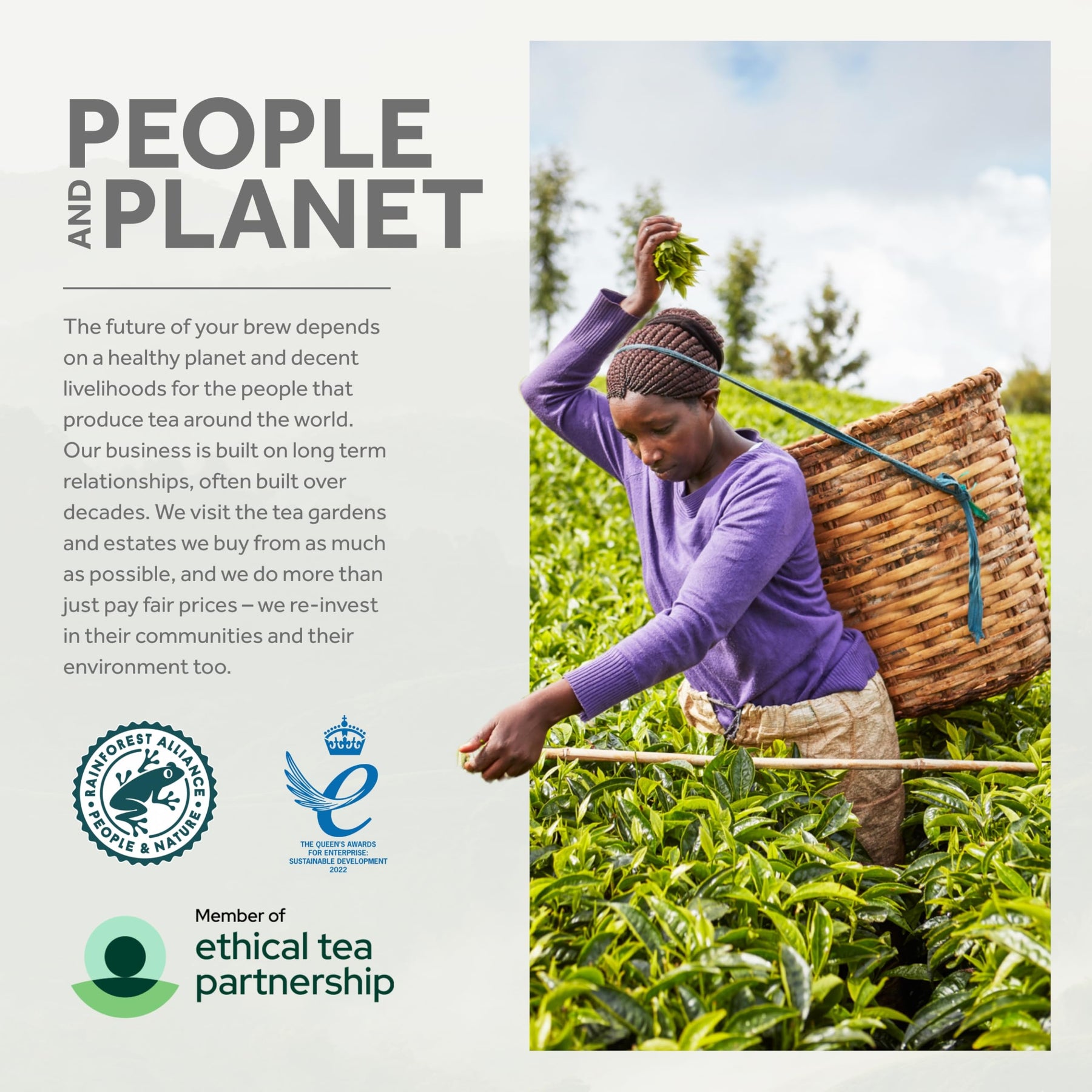 Founded in 1886 in Harrogate, North Yorkshire, Yorkshire Tea remains a family-owned business committed to fairness, flavour, and quality. They work closely with tea growers, paying sustainable prices and investing in communities and environmental sustainability. As a member of the Ethical Tea Partnership and Rainforest Alliance Certified, Yorkshire Tea supports ethical sourcing and sustainable practices across its supply chain.